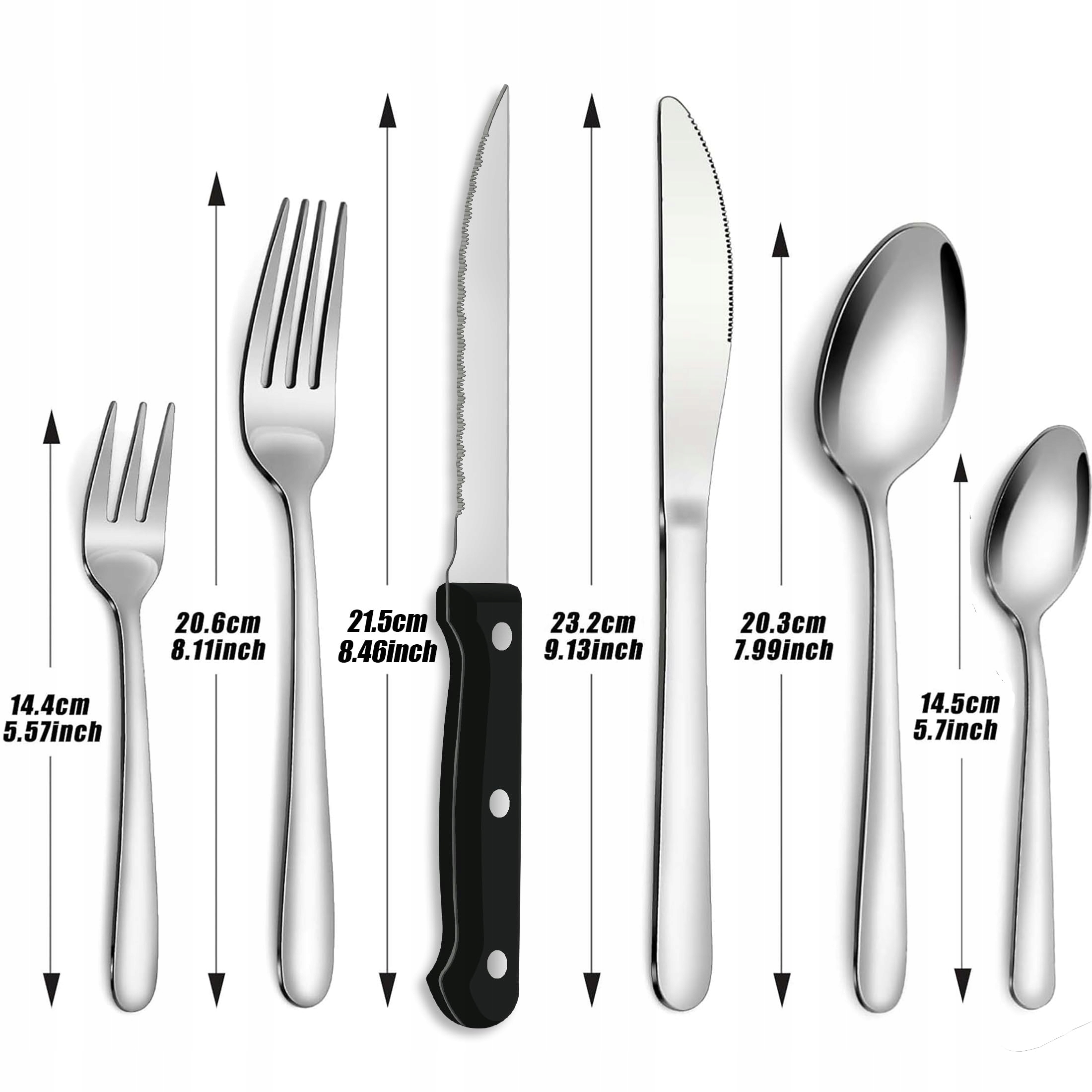 【Odpowiednie na wiele okazji】 Nasz zestaw sztućców dla 6 osób ma prosty i elegancki design z gładką powierzchnią, który uzupełnia Twój istniejący zestaw sztućców. Dzięki swojemu klasycznemu wzornictwu i doskonałemu stosunkowi jakości do ceny nadaje się na wesela, imprezy, rodzinne spotkania, wykwintną kuchnię lub restauracje tematyczne.