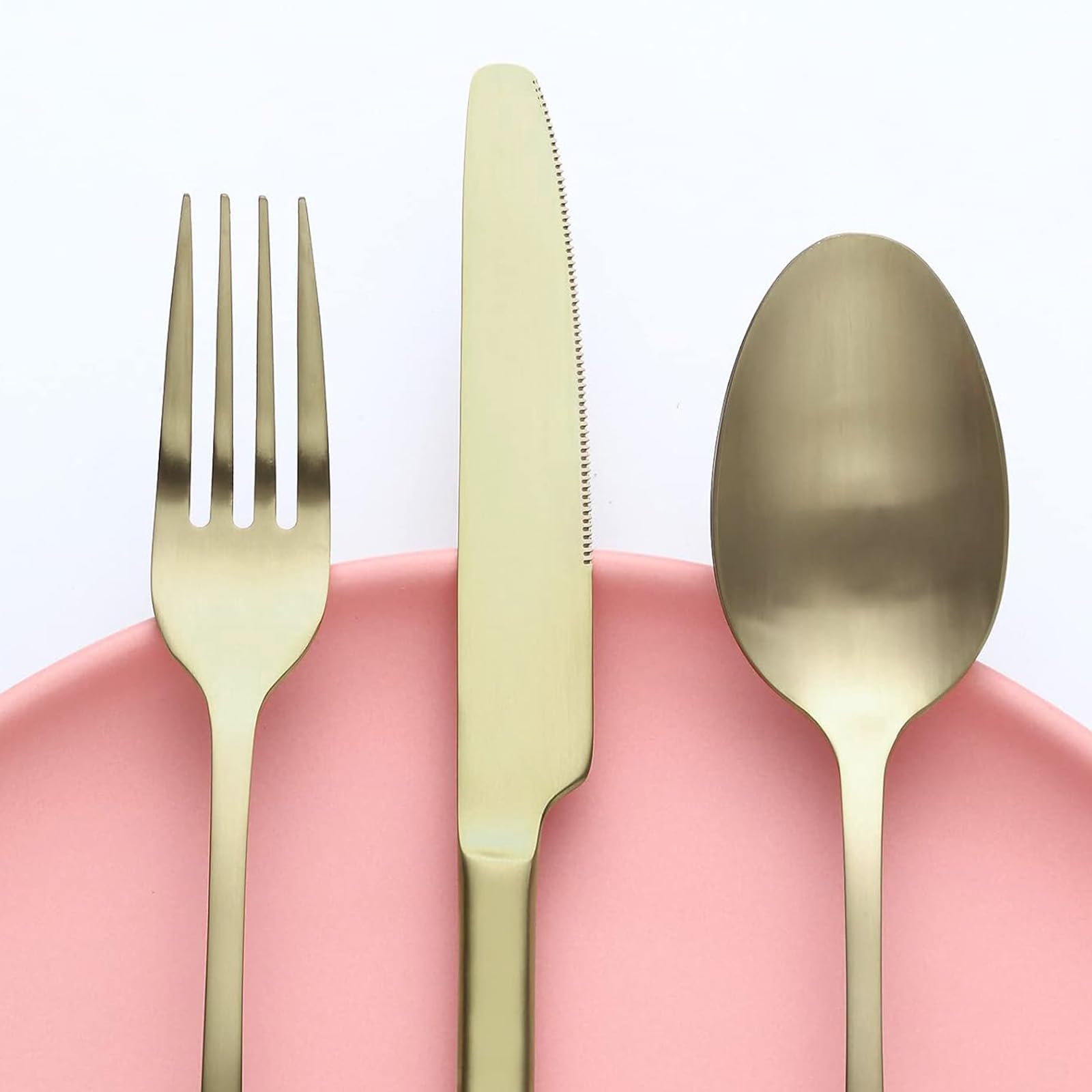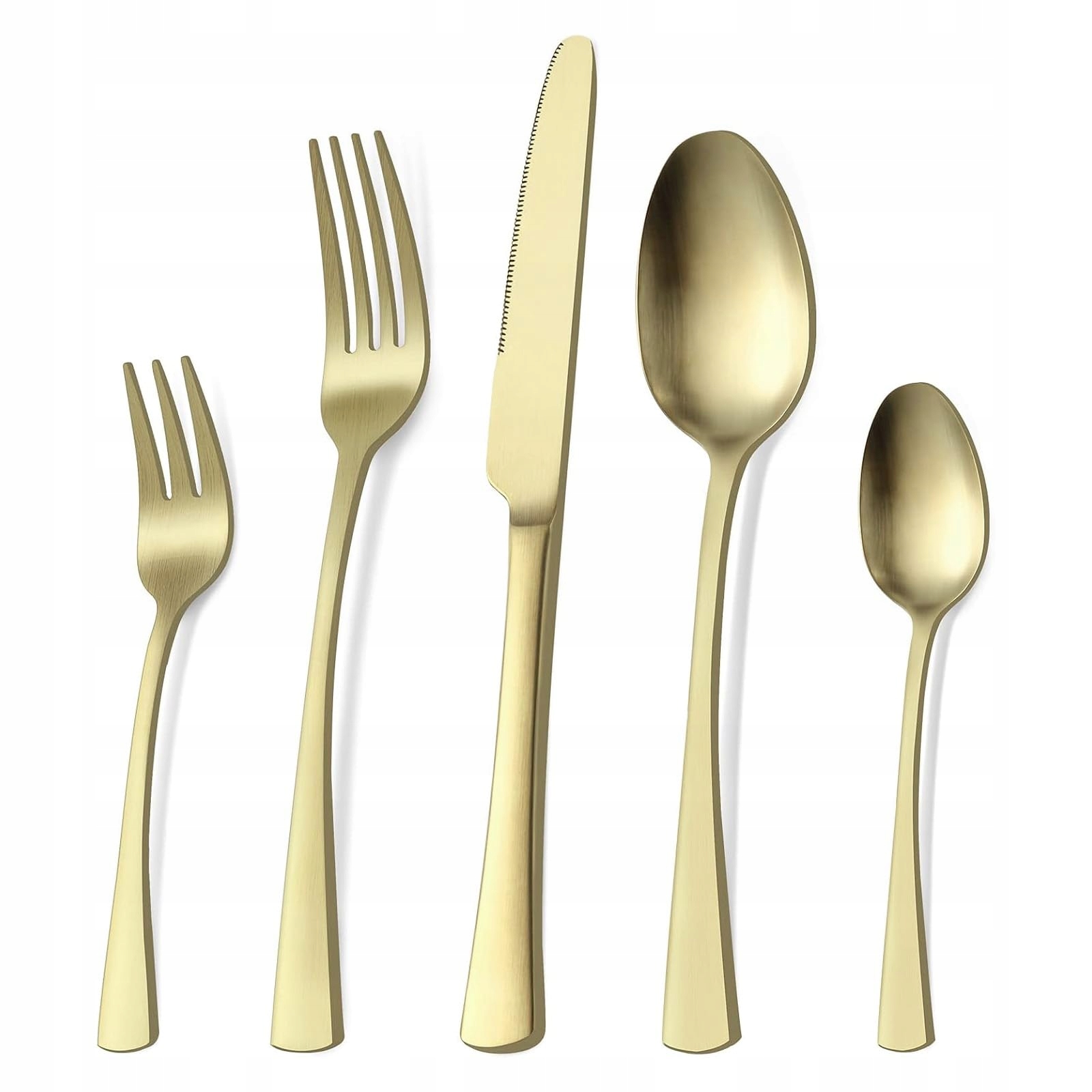 BESTDIN Zestaw Sztućców 6 Osób 30 Części Stal Nierdzewna Złoty Matowy
