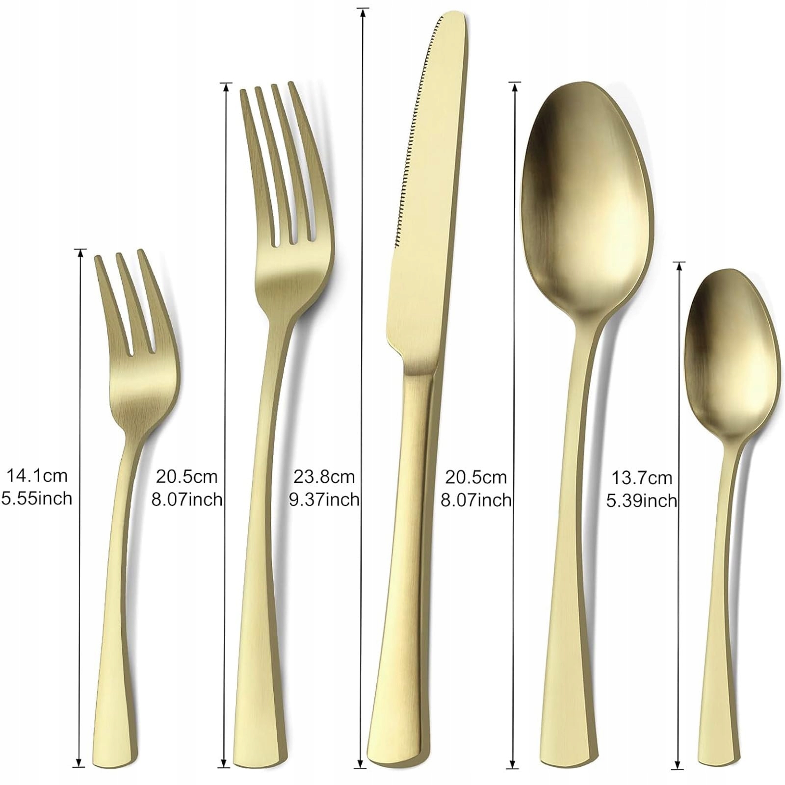 【Doskonałe rzemiosło】Zestaw sztućców ze stali nierdzewnej wykorzystuje proces galwanizacji próżniowej, który nie łatwo traci kolor. Ponadto wygląd złota szampana, który wyróżnia się na tle zwykłych naczyń, tworzy elegancką, szlachetną i luksusową atmosferę podczas posiłków. W codziennym życiu możesz używać zmywarki do czyszczenia, nie martwiąc się o uszkodzenia, co oszczędza dużo czasu.