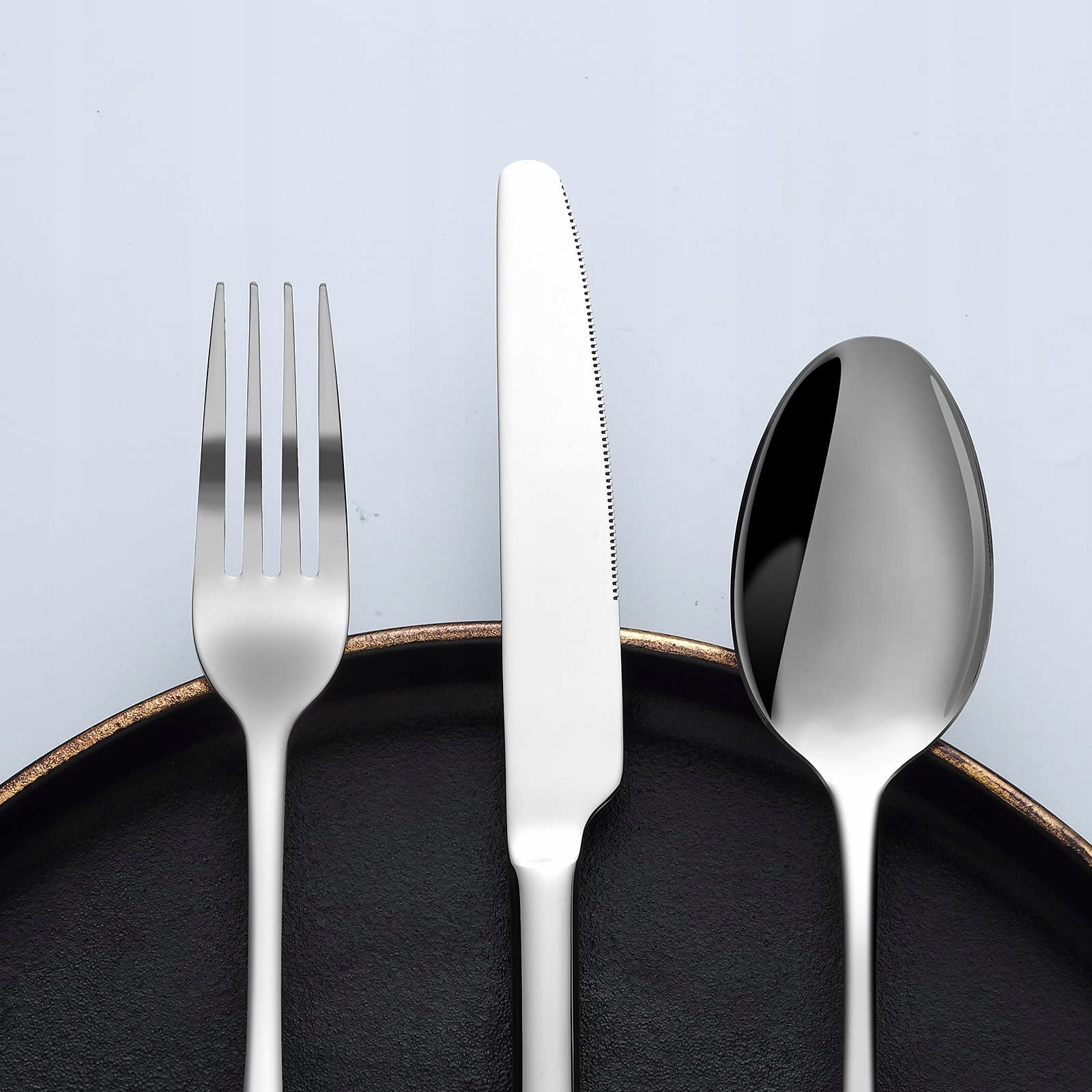 【Doskonałe rzemiosło】Zestaw sztućców ze stali nierdzewnej wykorzystuje proces galwanizacji próżniowej, który nie łatwo się odbarwia. Ponadto elegancki wygląd, który wyróżnia się na tle zwykłych naczyń, tworzy elegancką, szlachetną i luksusową atmosferę podczas posiłków. W codziennym życiu możesz używać zmywarki do czyszczenia, nie martwiąc się o uszkodzenia, co oszczędza dużo czasu.