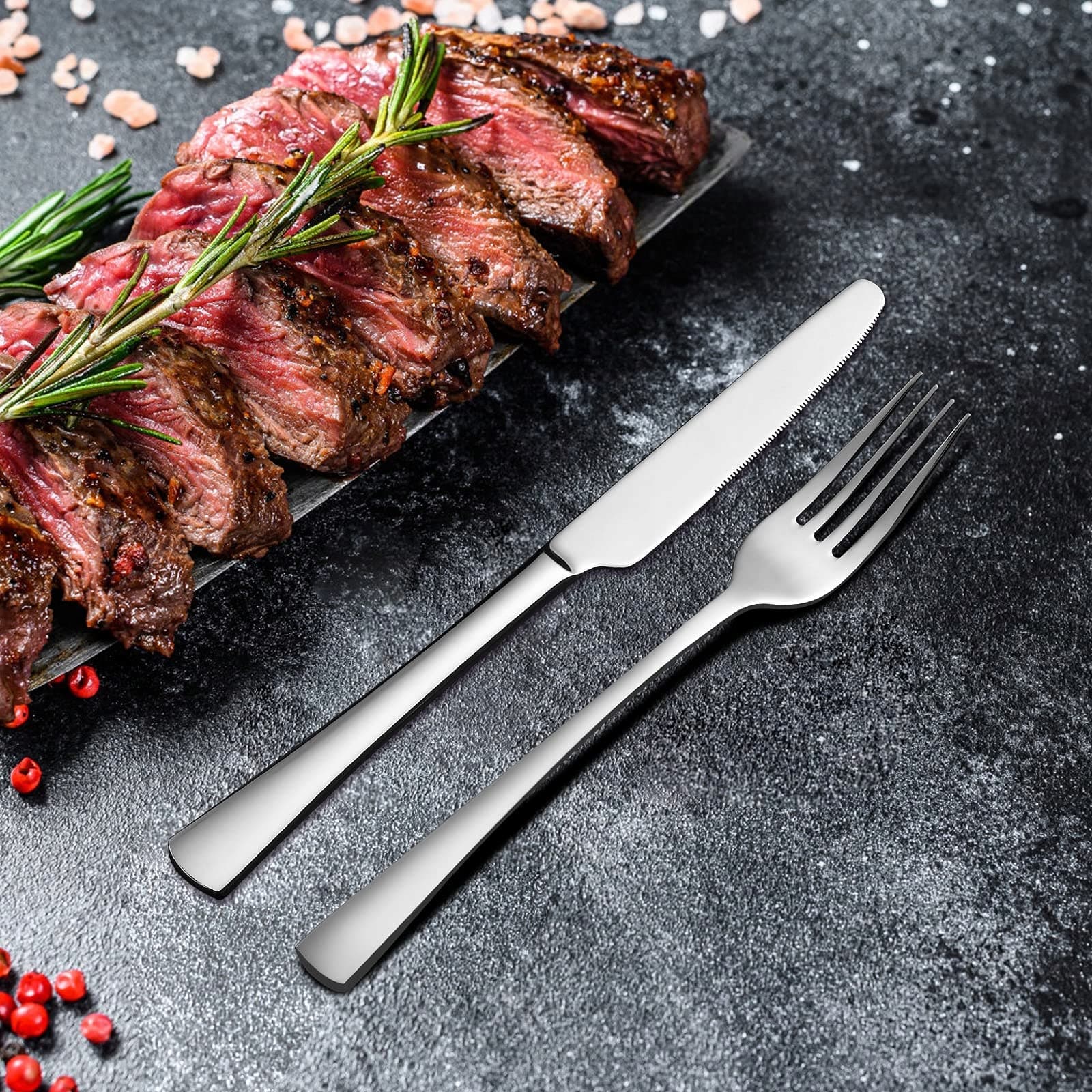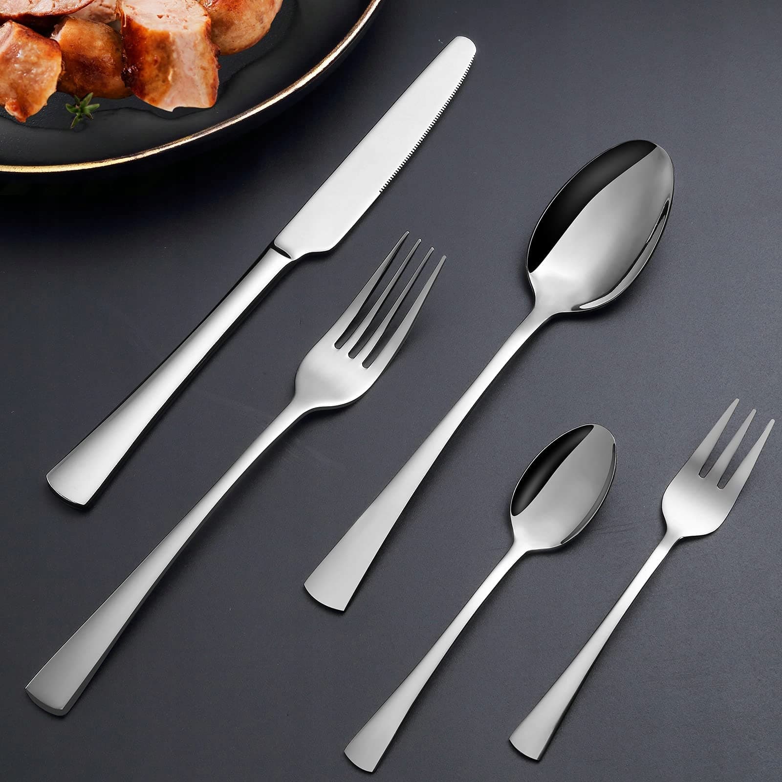 【Klasyczny design i przyjemny chwyt】Ręcznie polerowany, ten zestaw sztućców nie ma szorstkich miejsc, a kanciasty spód sprawia, że sztućce wyglądają bardziej indywidualnie. Klasyczne rzemiosło nadaje temu zestawowi sztućców nacisk na jakość, co sprawia, że Twoje kulinarne doświadczenie jest bardziej uporządkowane i przyjemniejsze w użyciu.