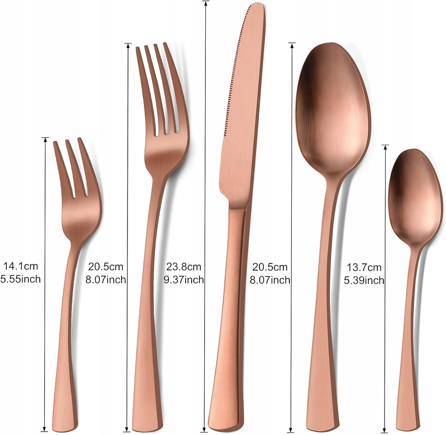 【Klasyczny design i przyjemny chwyt】Ręcznie polerowany, ten zestaw sztućców nie ma szorstkich miejsc, a kanciasty spód sprawia, że sztućce wyglądają bardziej indywidualnie. Klasyczne rzemiosło nadaje temu zestawowi sztućców nacisk na jakość, co sprawia, że Twoje kulinarne doświadczenie jest bardziej uporządkowane i przyjemniejsze w użyciu.