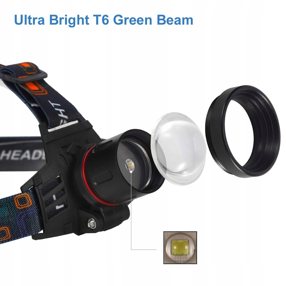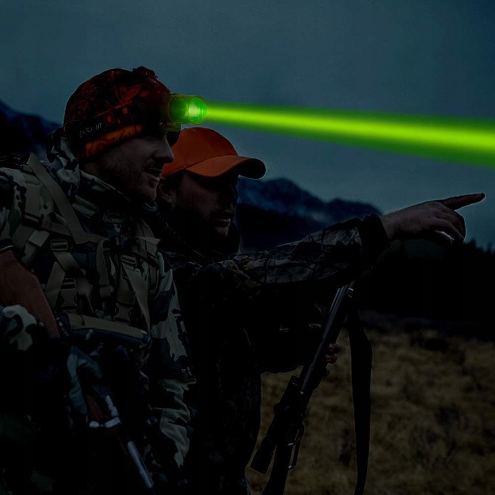 Zielone czołówki LED o wysokiej intensywności: Ta czołówka myśliwska używa super jasnej zielonej wiązki światła XML-T6, która jest znacznie jaśniejsza niż inne reflektory z zielonym światłem. W trybie wysokim może osiągnąć do 1000 lumenów. Będziesz zaskoczony, jak jasne jest to światło.