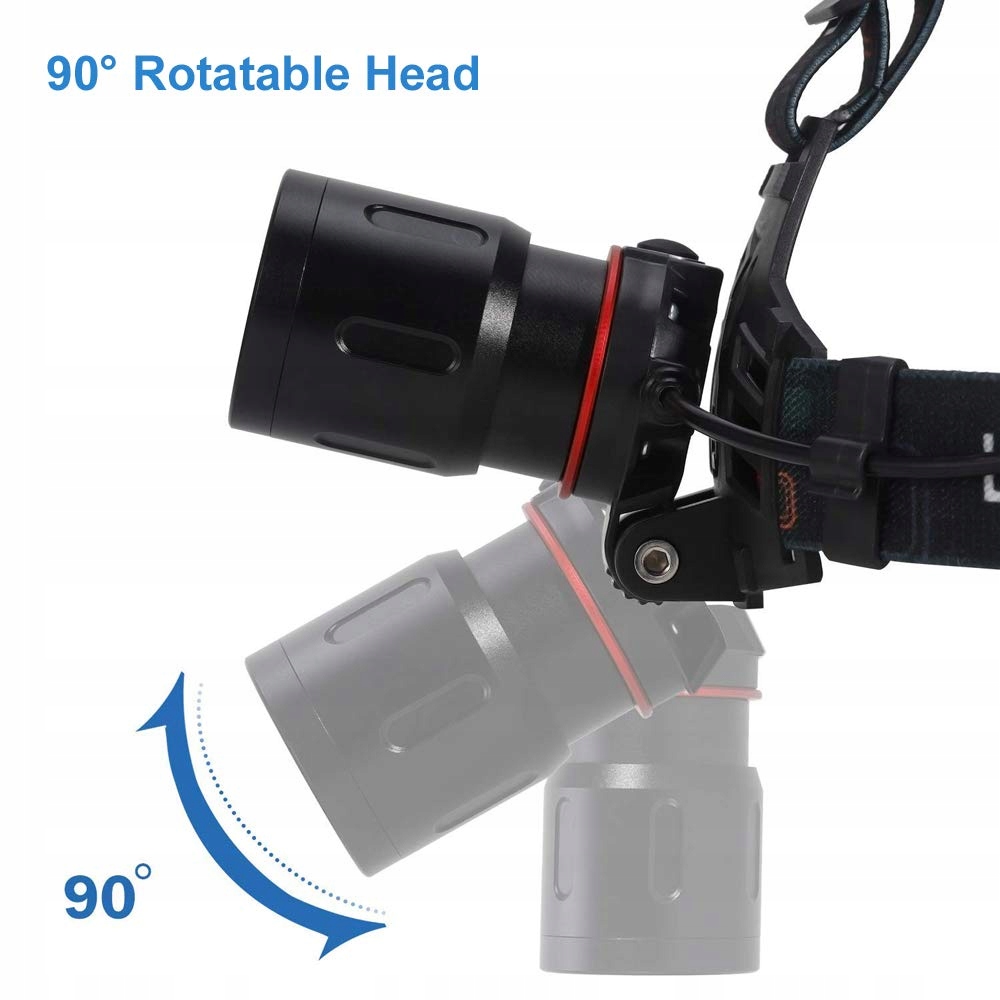 Regulowany kąt nachylenia głowy: Głowa obracana o 90°, obróć ją, aby świecić dosłownie w dowolnym wybranym kierunku. Praktyczna, niezawodna, trwała, wodoodporna, lekka i wygodna!