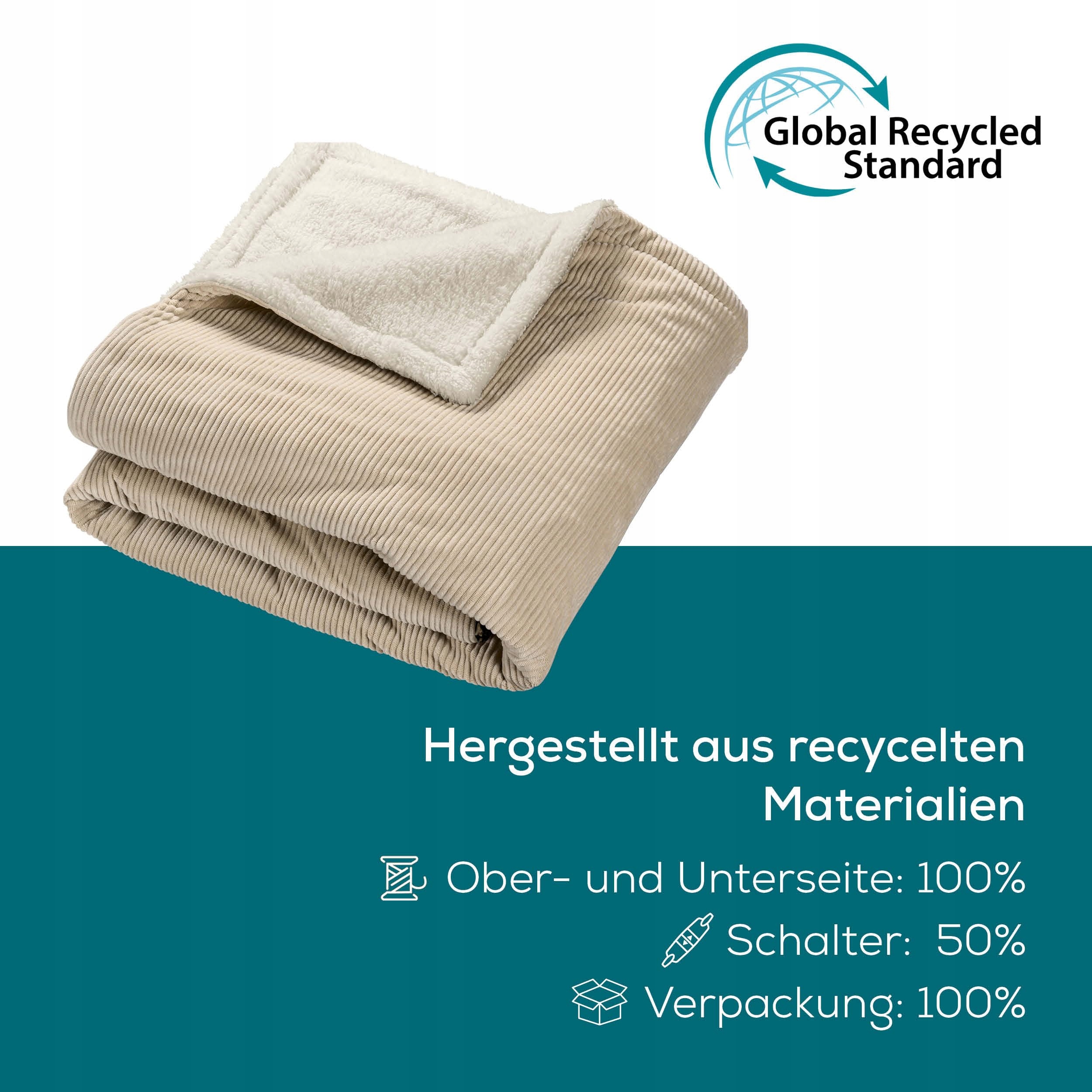 Beurer HD 80 Cord beżowy koc elektryczny, przytulny koc grzewczy z 6 poziomami temperatury, z recyklingu, z automatycznym wyłączaniem i systemem bezpieczeństwa, koc z modnego, miękkiego materiału sztruksowego