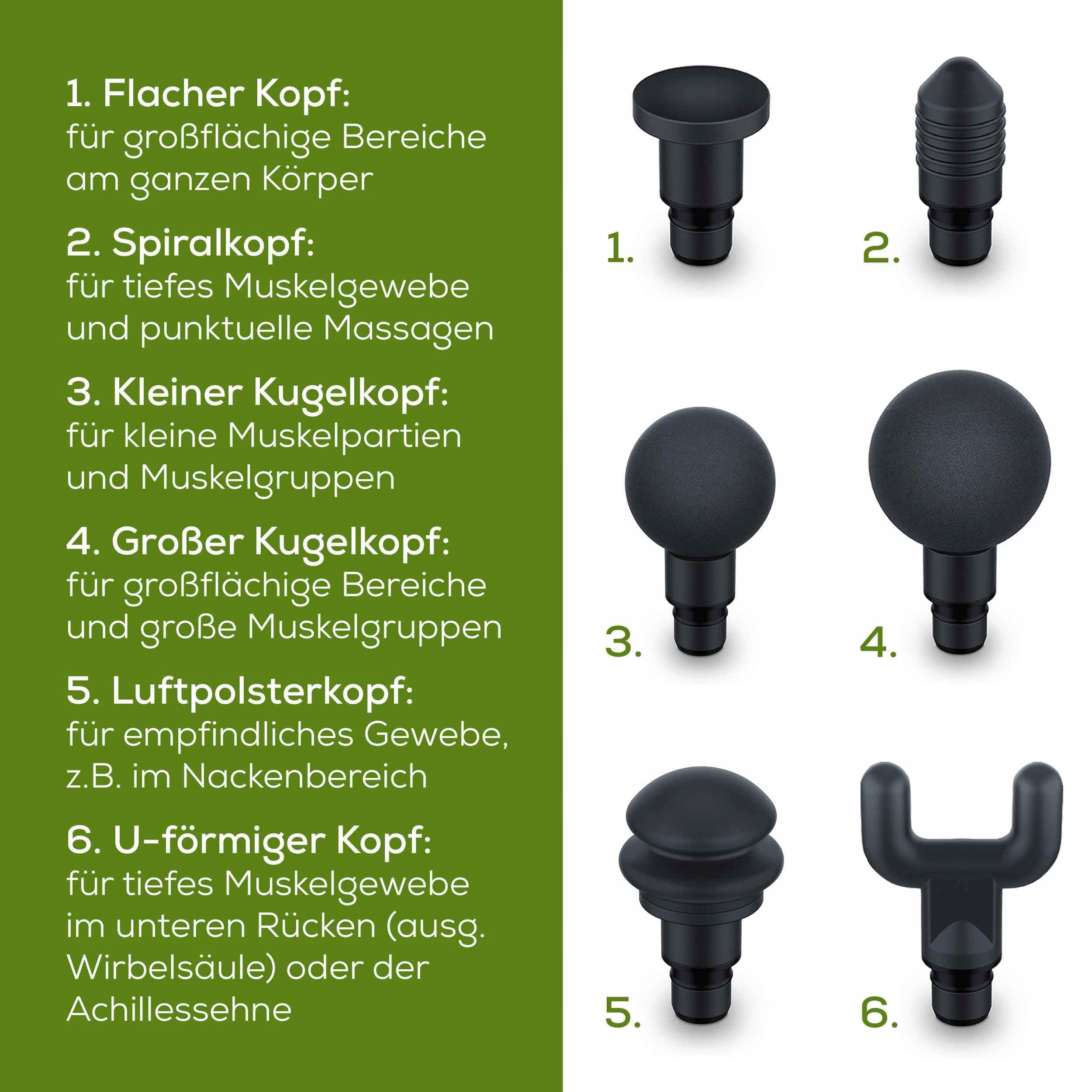 Dla całego ciała: Zestaw pistoletu do masażu zawiera 6 wymiennych końcówek do masażu, które umożliwiają precyzyjne i mocne zastosowanie na całym ciele