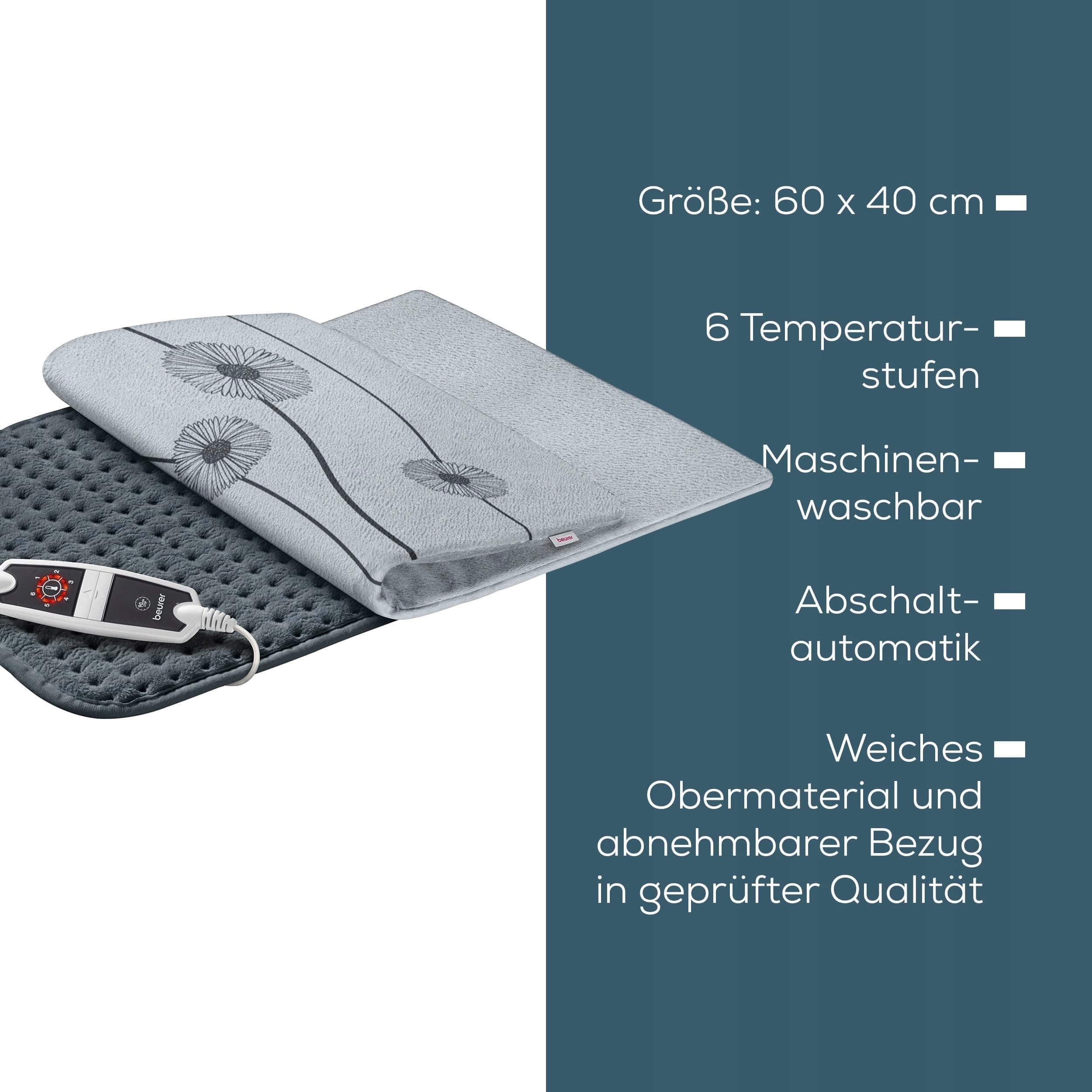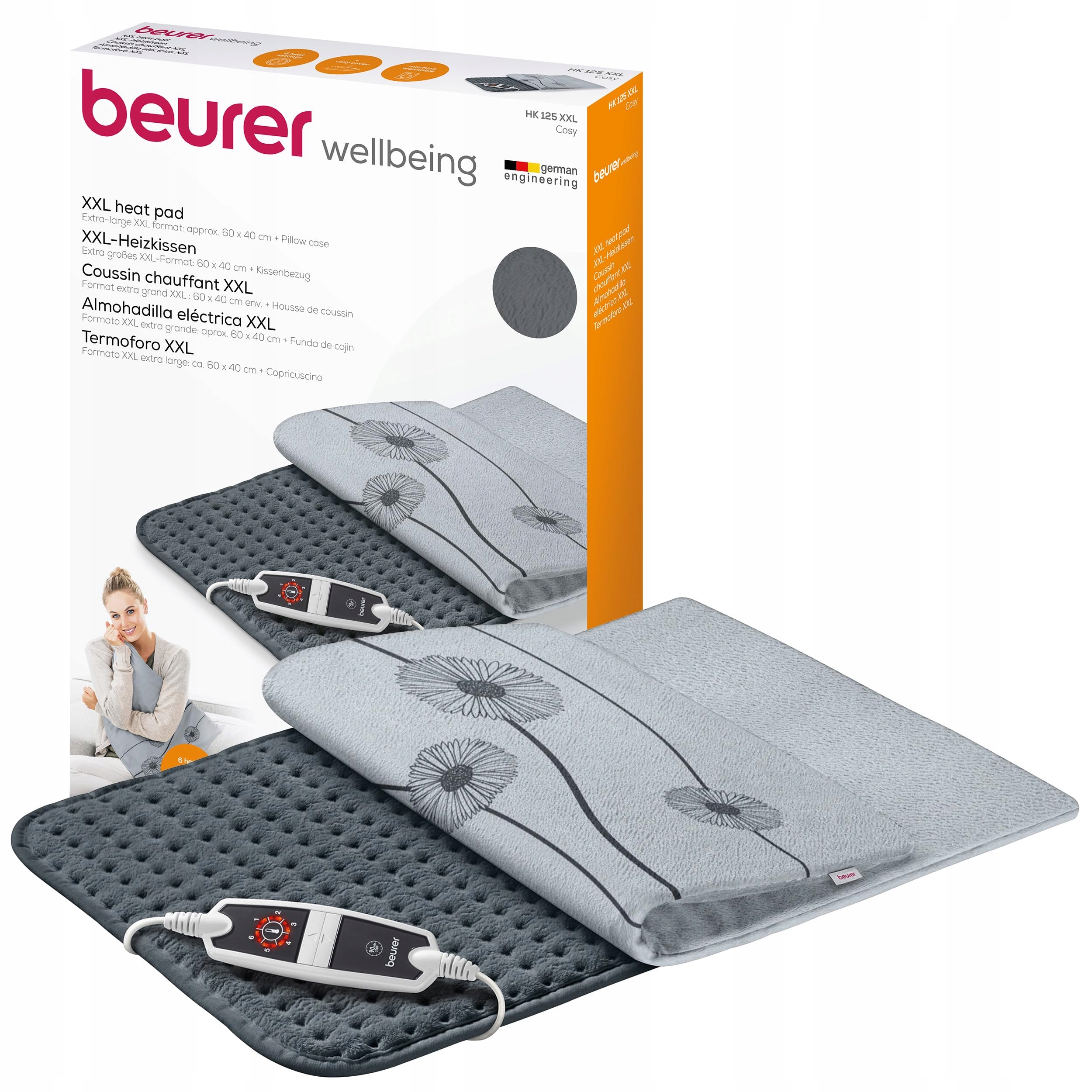Beurer HK 125 poduszka grzewcza (format XXL, z 6 poziomami temperatury, automatycznym wyłączaniem i przełącznikiem LED, nadająca się do prania w pralce), szara, 1 sztuka (1 opakowanie), 60 x 40 cm