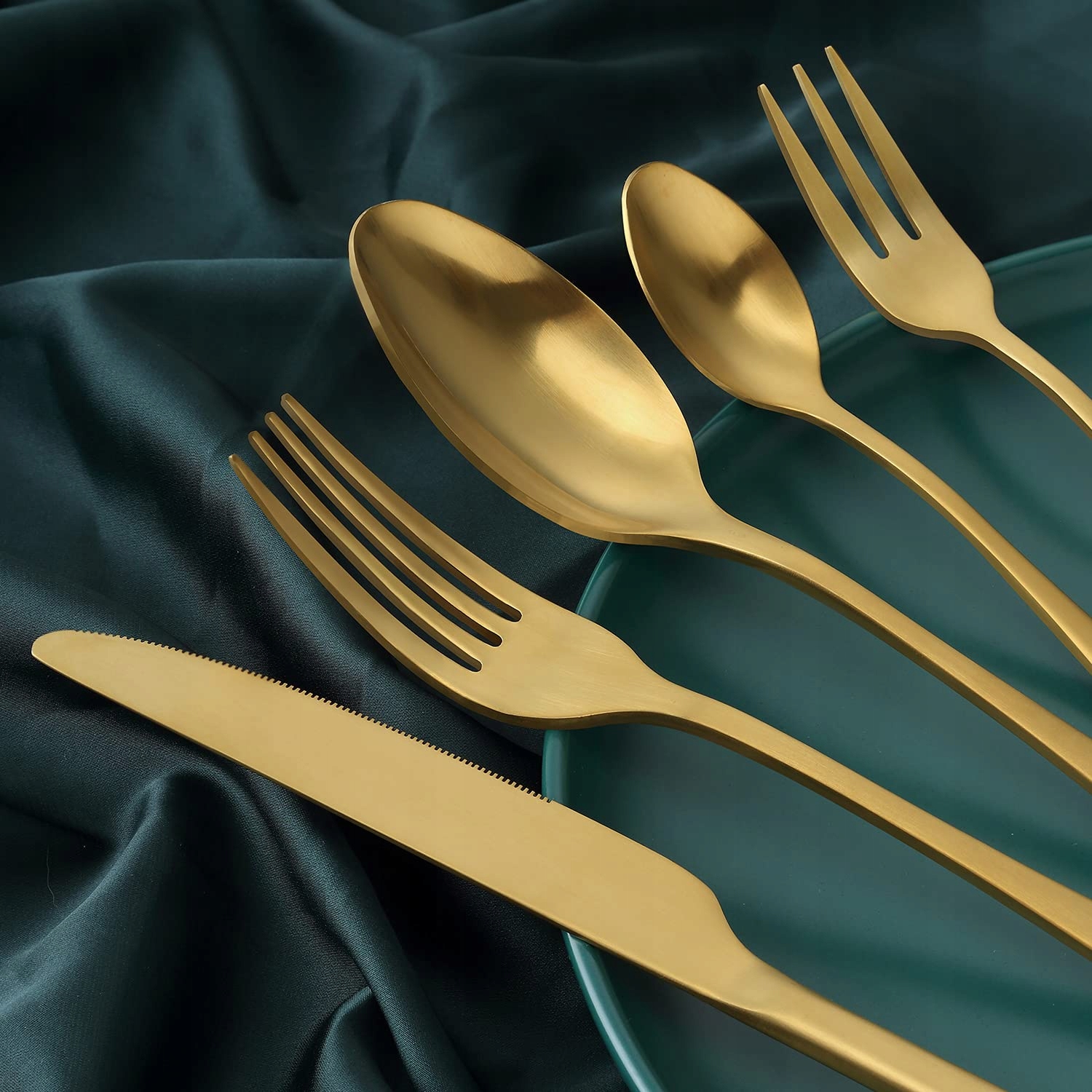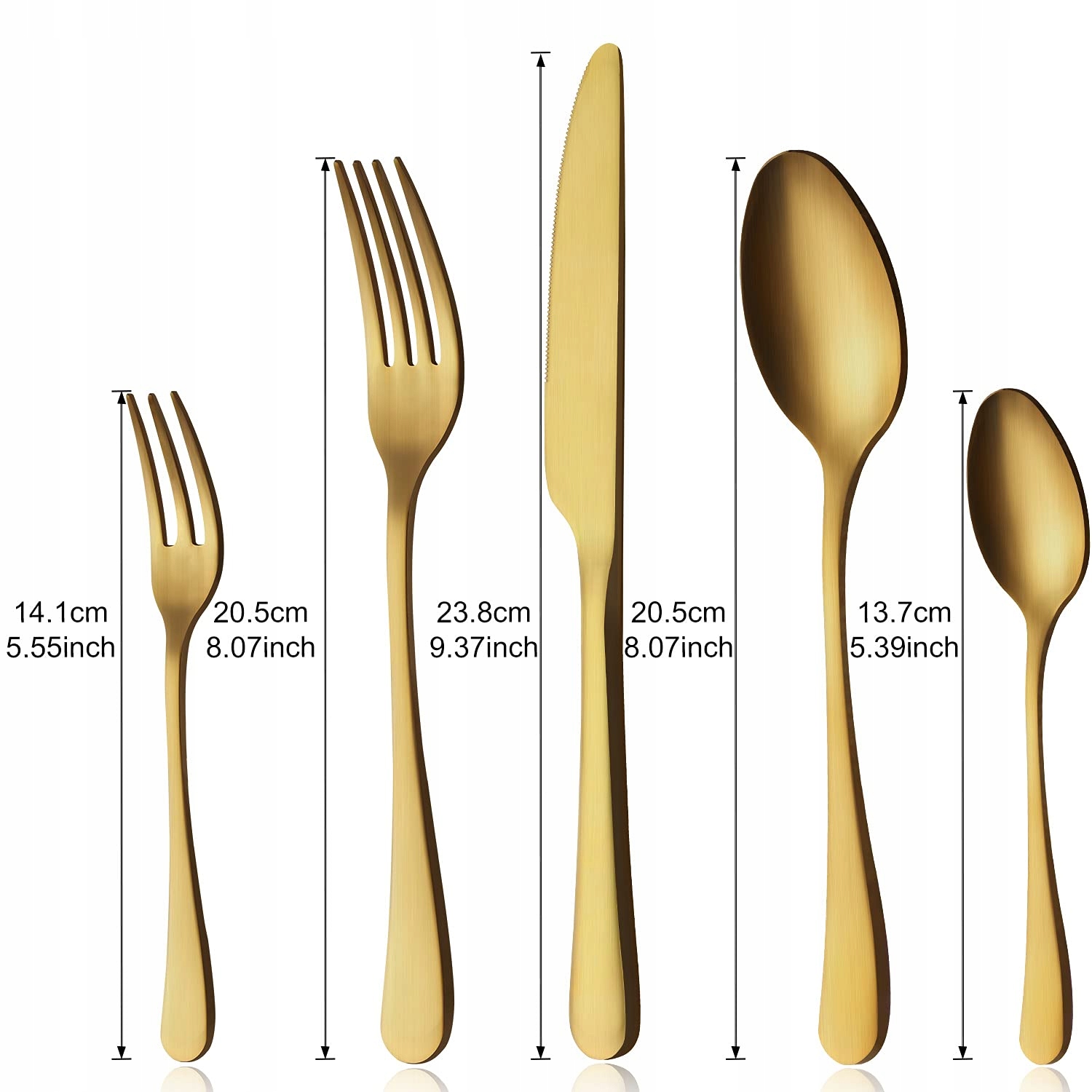【Zdrowie i trwałość】Zestaw sztućców w matowym złocie jest wykonany z wysokiej jakości stali nierdzewnej spożywczej, kutej z jednego kawałka, co zapewnia zdrowie i trwałość, jest nietoksyczny, wolny od niklu, odporny na korozję.
