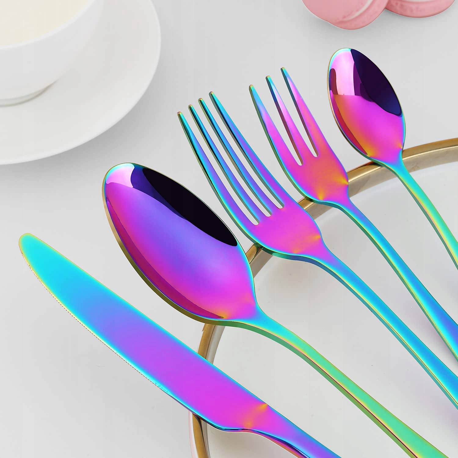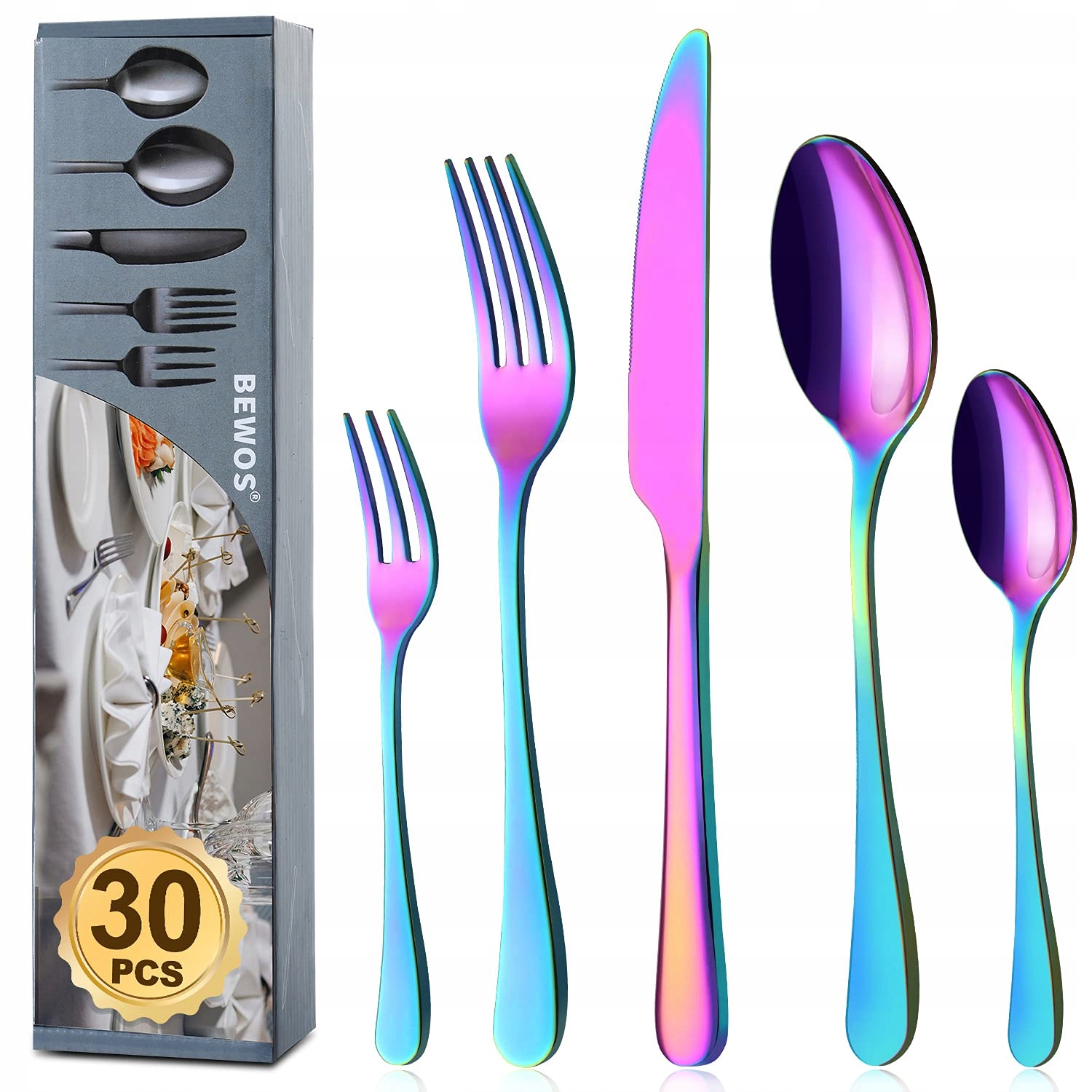 BEWOS Zestaw Sztućców Tęczowych Dla 6 Osób 30 Elementów Stal Nierdzewna | Premium Supply