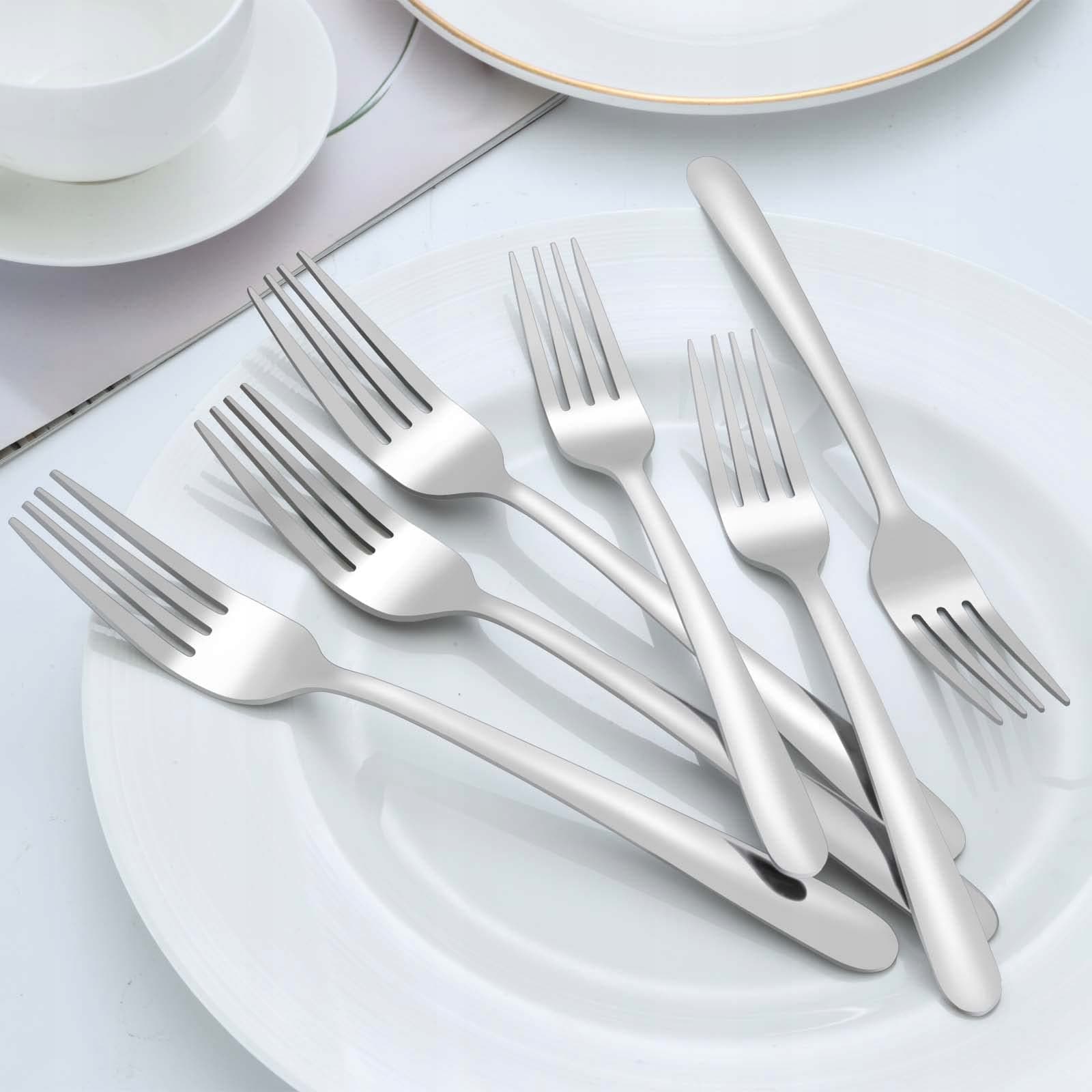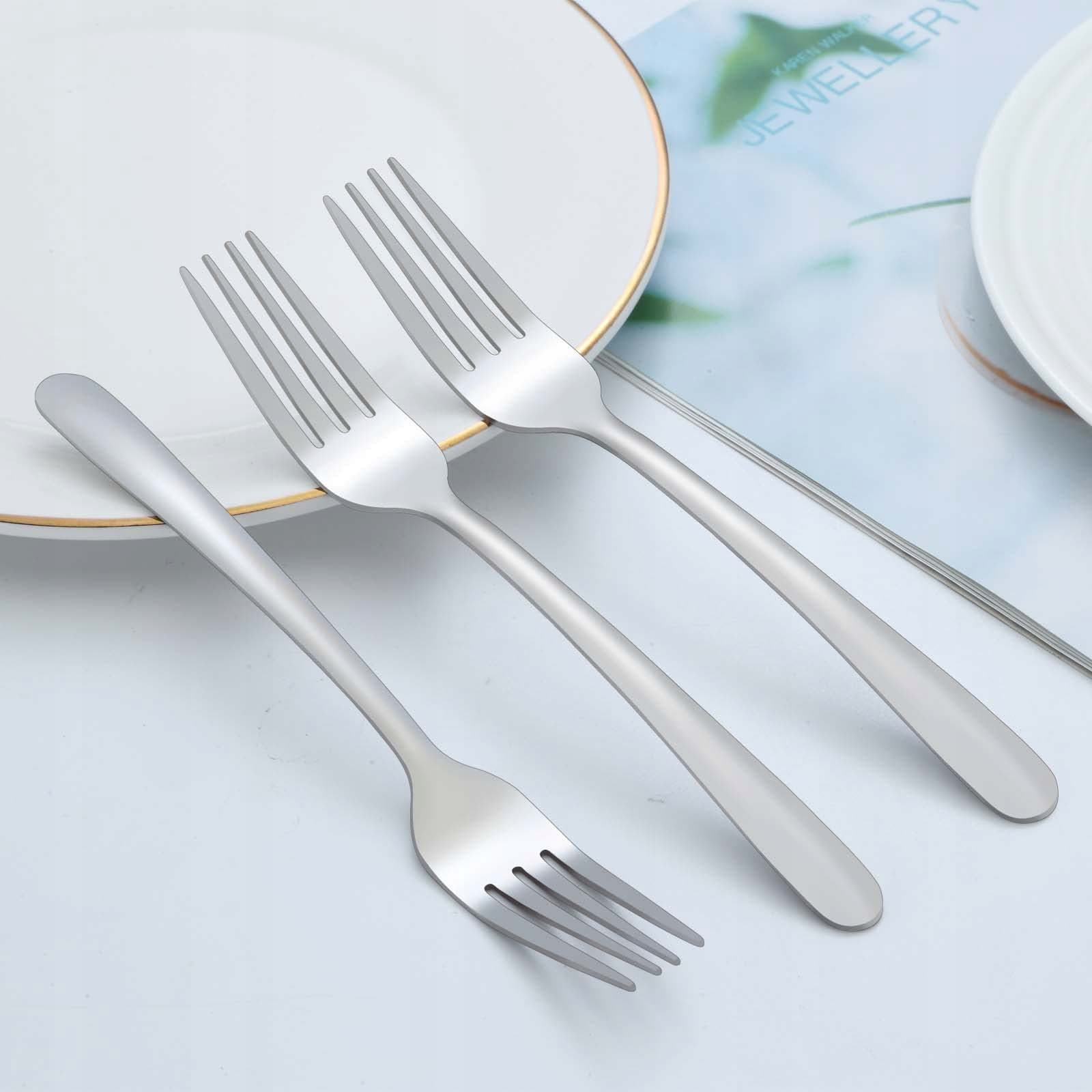 【Wysokiej jakości stal nierdzewna】 Widelce wykonane są z wysokiej jakości stali nierdzewnej. Te widelce stołowe są solidne, odporne na korozję, nierdzewne, bez zapachu, co zapewnia, że bezpiecznie będziesz cieszyć się każdym kęsem jedzenia i otrzymasz trwały zestaw widelców, który posłuży przez wiele lat.