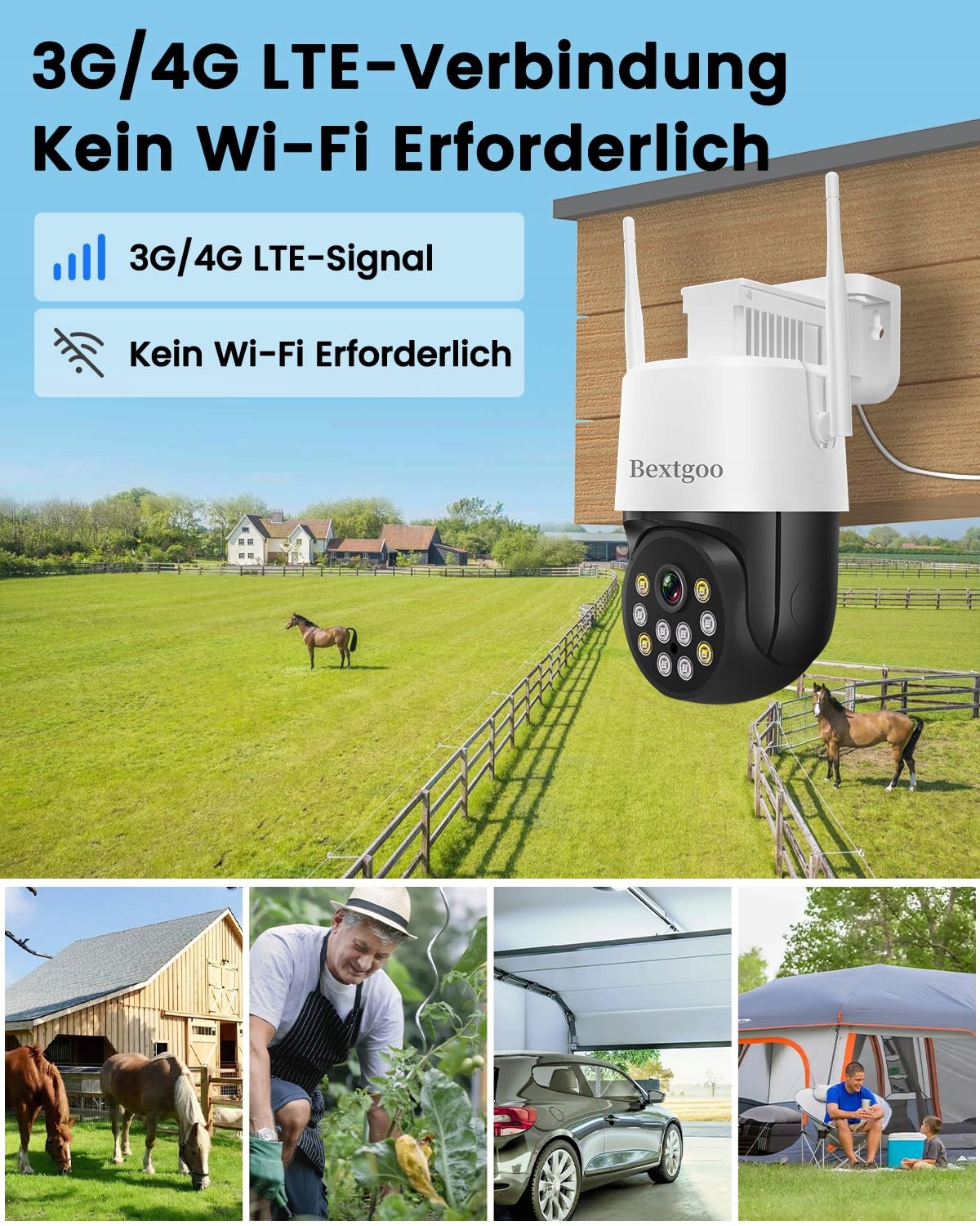 Kamera monitoringu Bextgoo z kartą SIM, 4MP 4G LTE kamera monitoringu bez Wi-Fi, kąt widzenia 360° PTZ, kolorowa widoczność nocna, AI wykrywanie ruchu, IP66