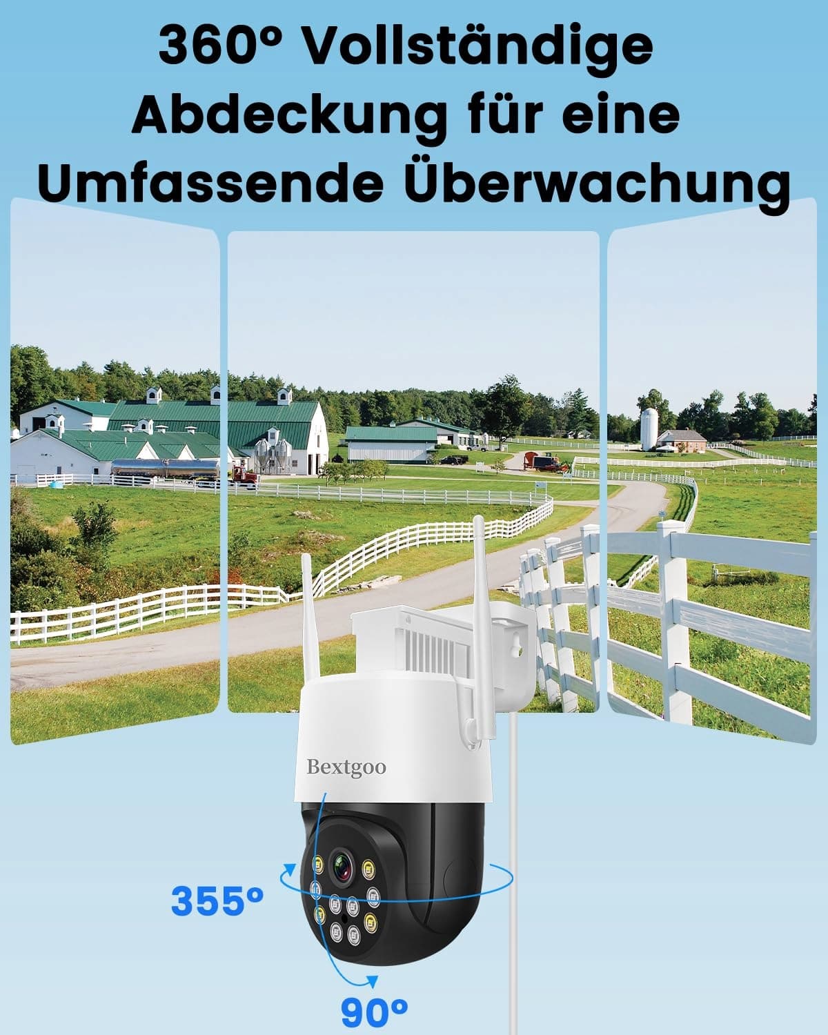 【360° pełne pokrycie z inteligentnym automatycznym śledzeniem】Obrót o 355° i pochylenie o 90° zapewniają pełne pokrycie Twojej posesji. Inteligentne śledzenie automatycznie podąża w czasie rzeczywistym, a 10-krotny zoom cyfrowy pozwala dostrzec ważne szczegóły i całkowicie monitorować posesję przez aplikację.