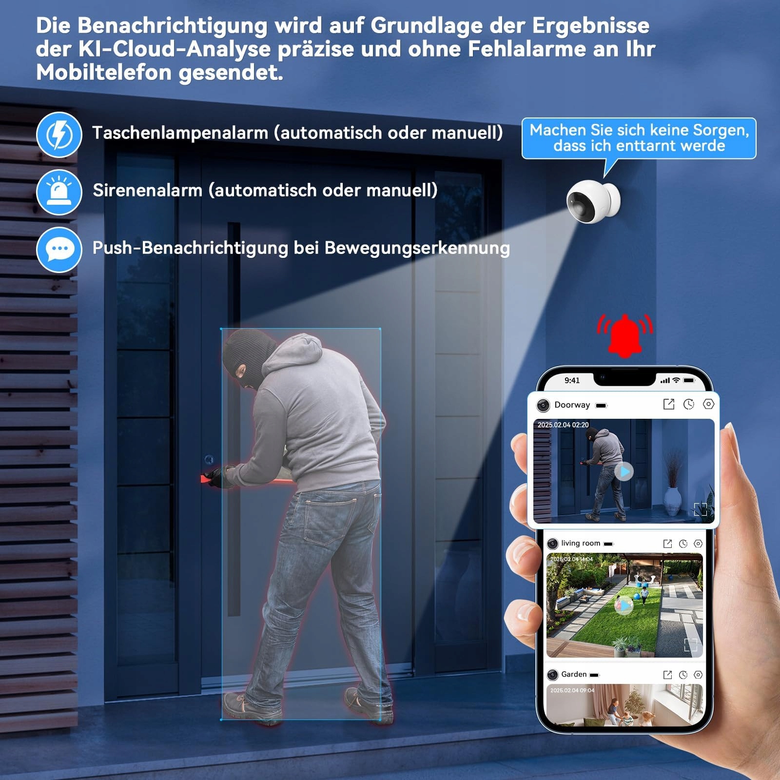 Jakość wideo 2K HD – Doświadcz każdego szczegółu w oszałamiającej rozdzielczości 2K HD dla krystalicznie czystych, wysokiej rozdzielczości materiałów wideo, które zapewniają doskonały monitoring zarówno w dzień, jak i w nocy. Idealne do bezpieczeństwa domu, monitoringu zewnętrznego oraz dla wszystkich, którzy chcą mieć szczegółowe nagrania dla swojego bezpieczeństwa