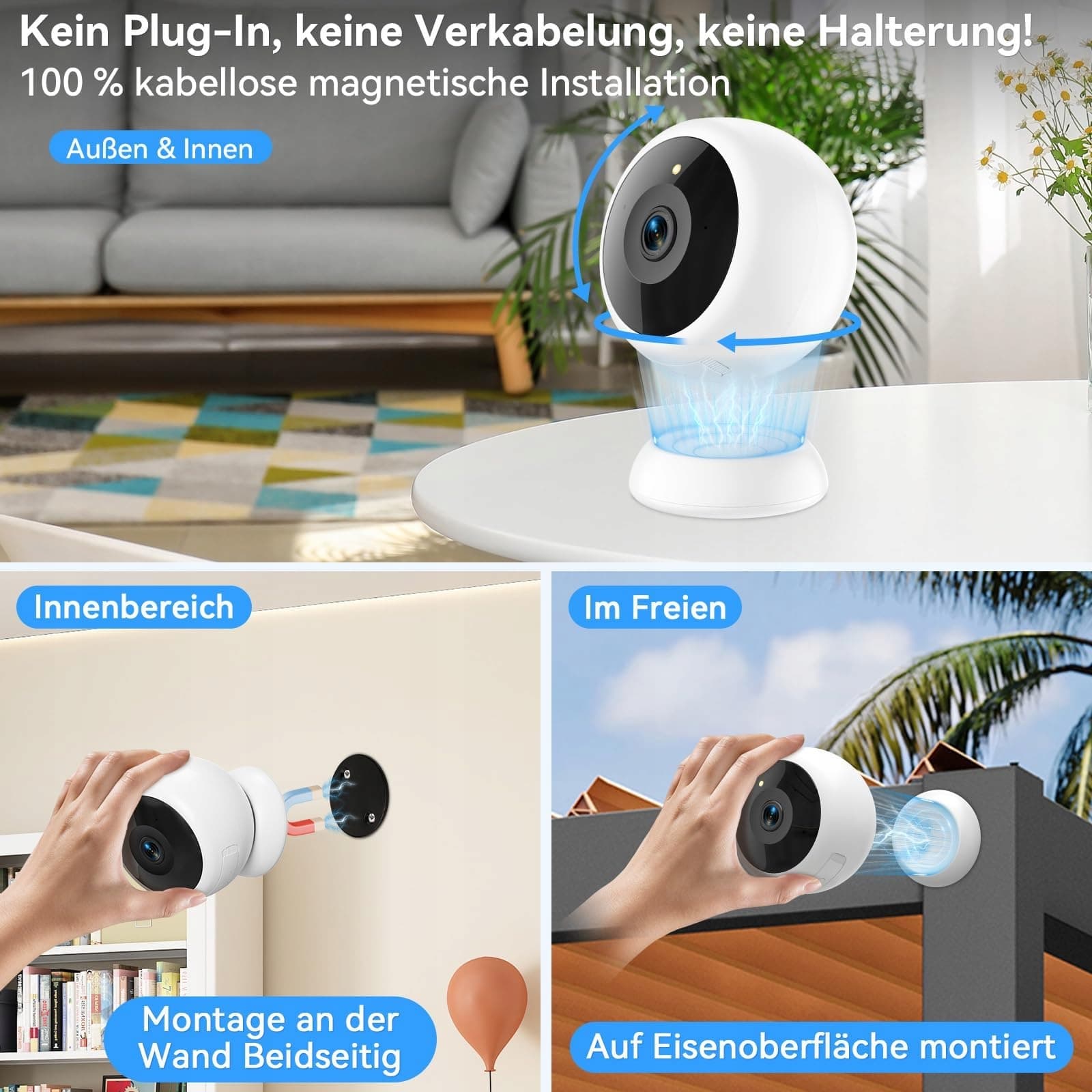 Bezprzewodowe kamery bezpieczeństwa na zewnątrz magnetyczne - wideo 2K HD, wykrywanie ruchu, widzenie nocne, wodoodporne, inteligentne sterowanie aplikacją, łatwa instalacja do monitoringu domowego i zewnętrznego