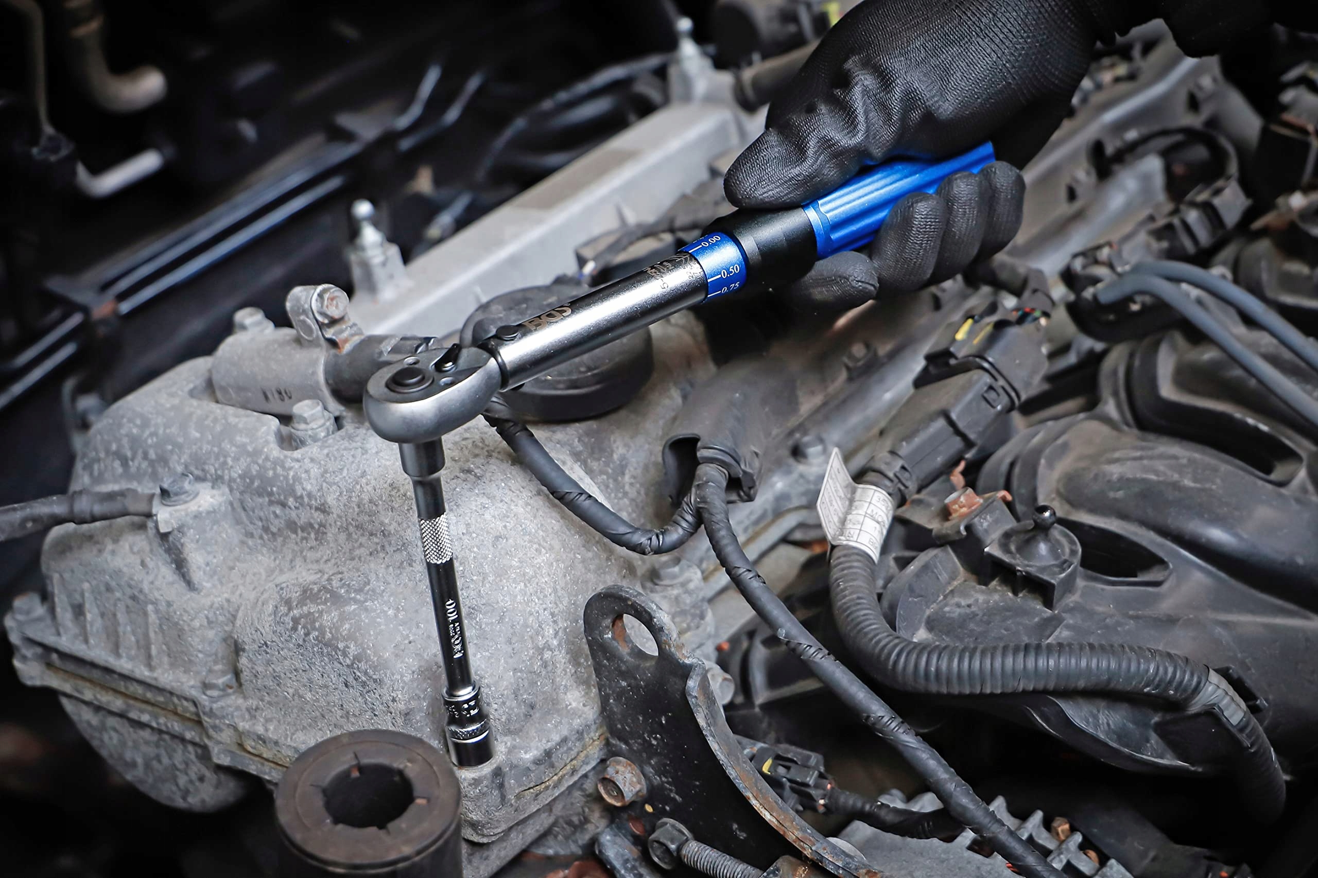 odpowiedni do dokręcania z momentem przy połączeniach z gwintem prawym | Przełączana grzechotka o wąskiej głowicy | Mechanizm grzechotki, przełączany