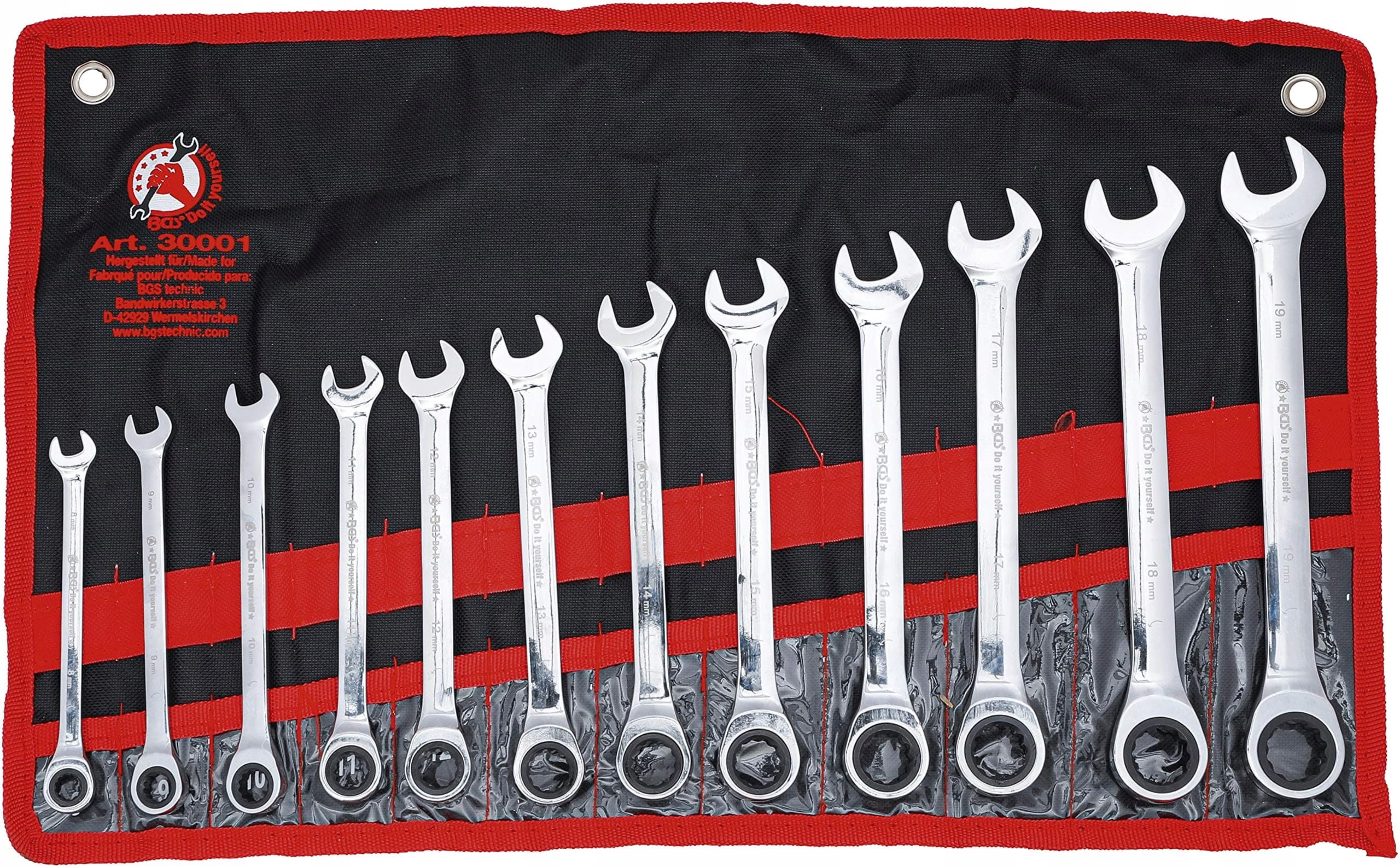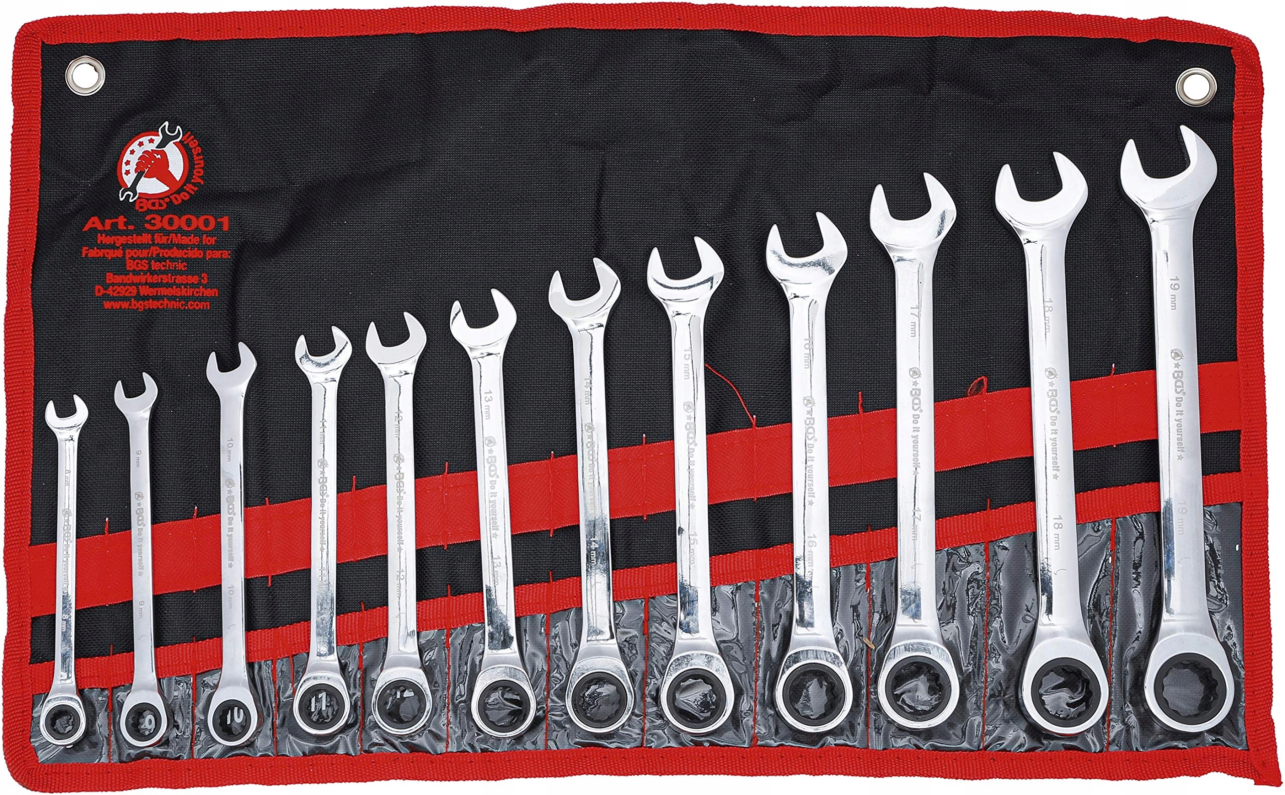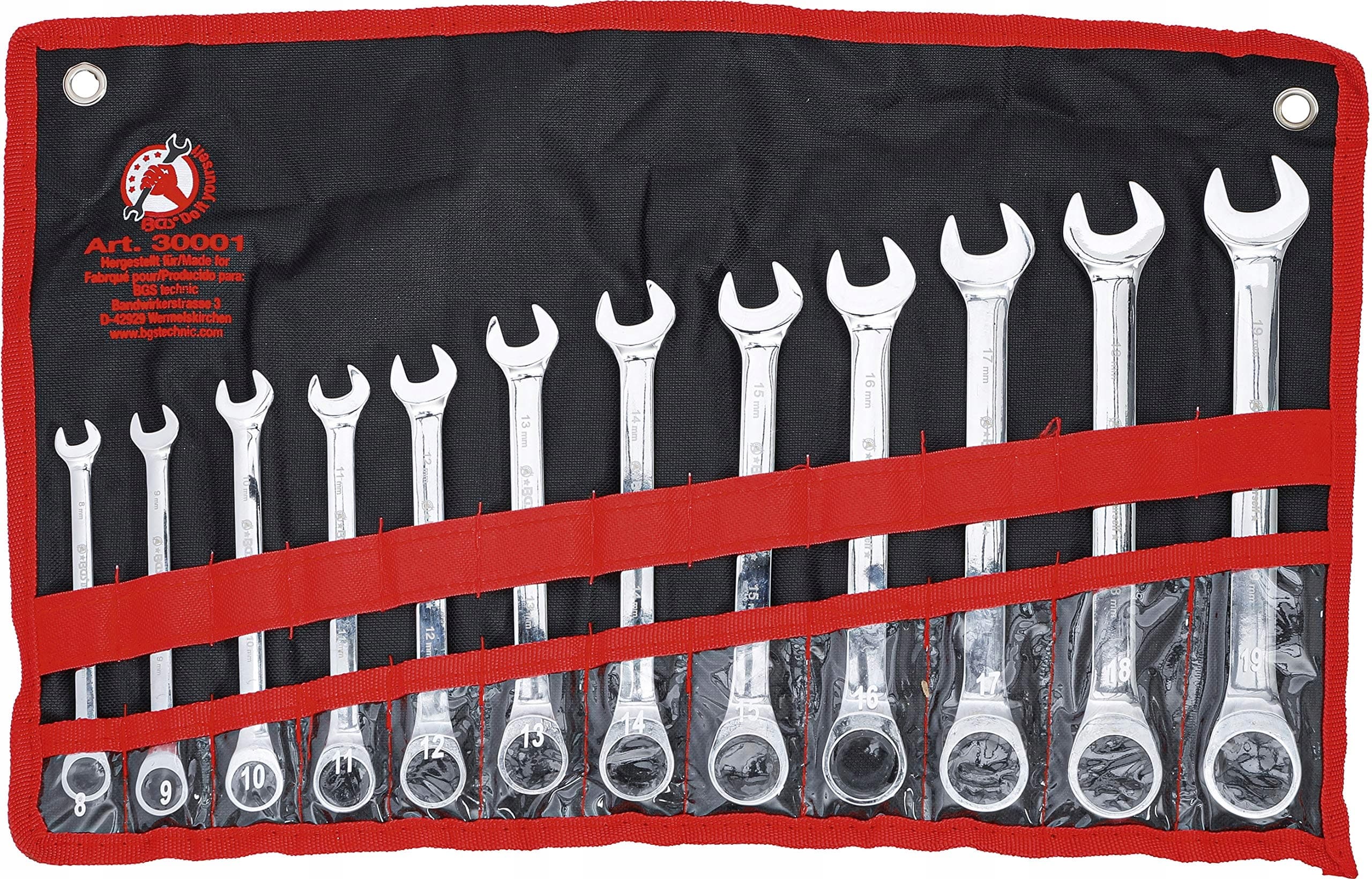 BGS Zestaw Kluczy Płasko-Oczkowych Z Grzechotką 12 Sztuk 8-19 mm | Premium Supply