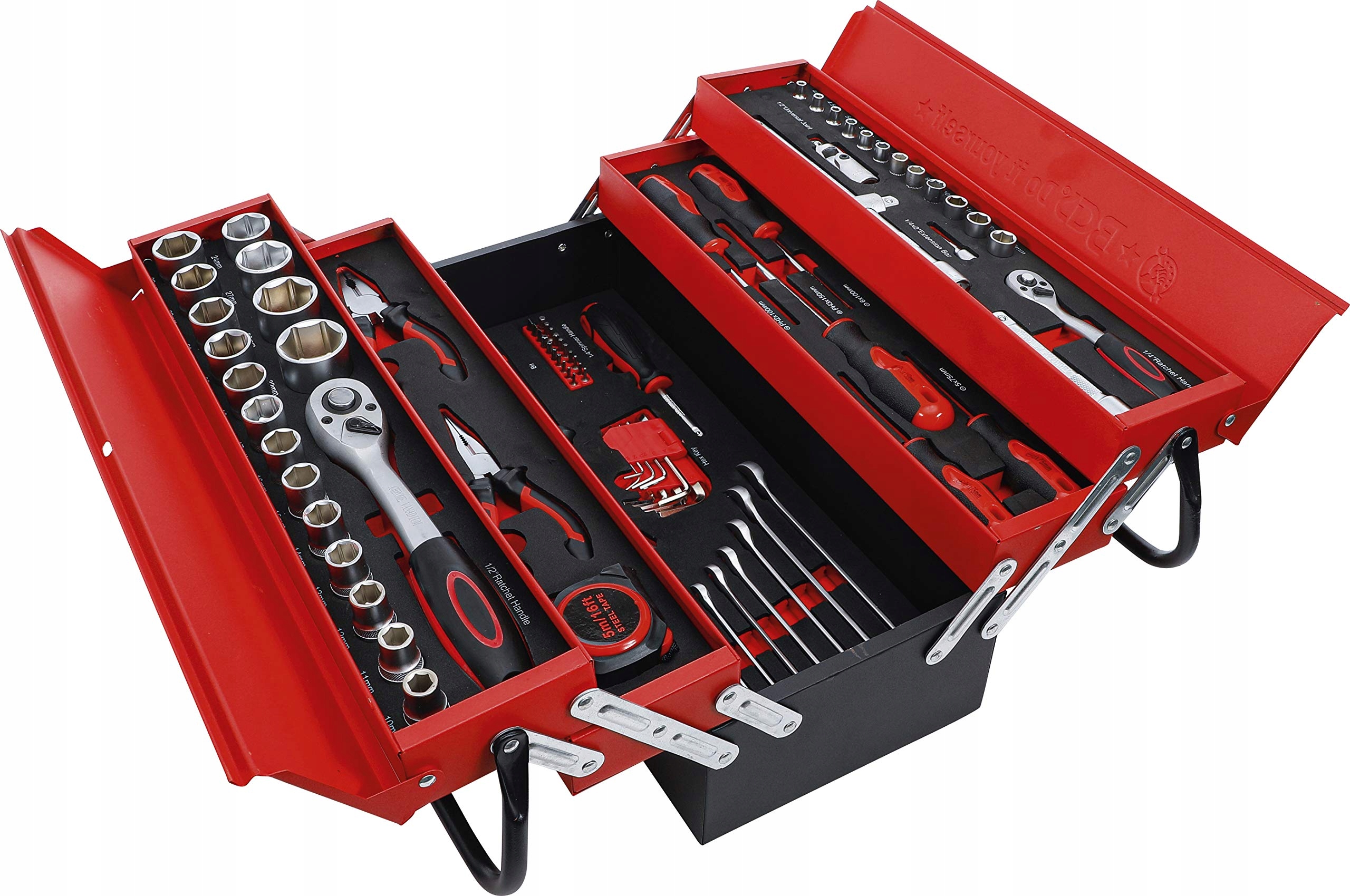wykonana z blachy stalowej | z 2 uchwytami | stabilna konstrukcja | 5 przegród | wkłady z pianki poliuretanowej wykonane z pianki EVA o dwóch komponentach