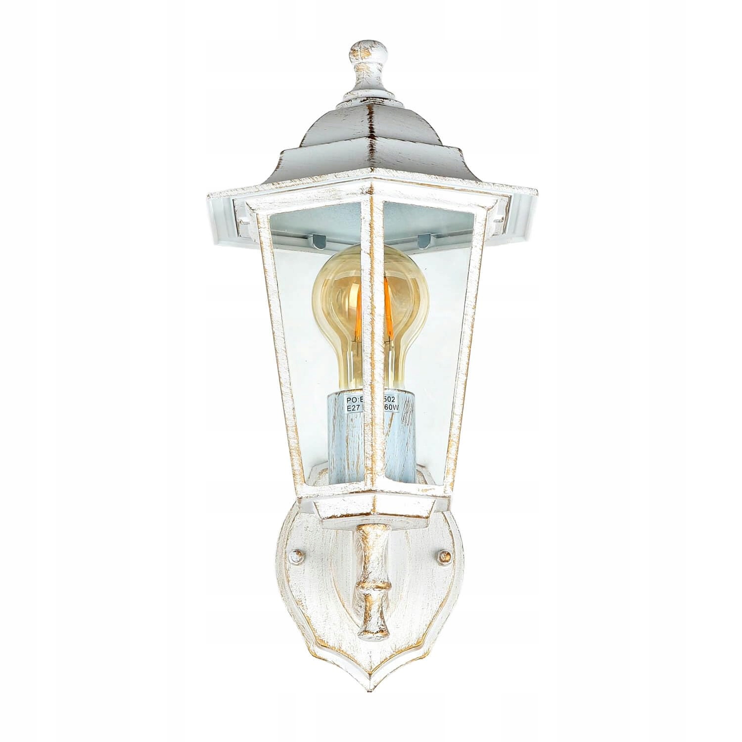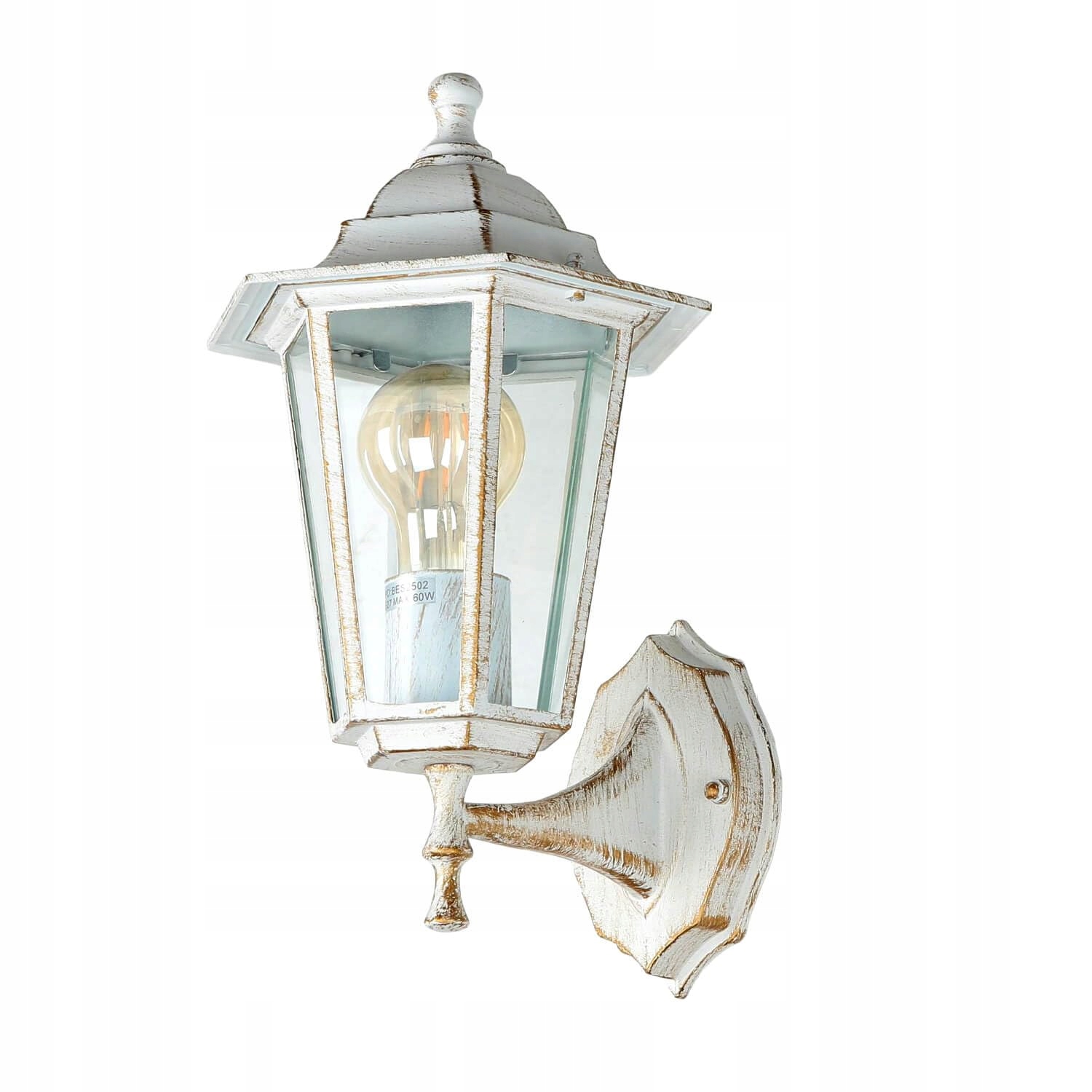 Rustykalna lampa zewnętrzna na ścianę w dekoracyjnym białym złocie; Lampa ścienna na zewnątrz umożliwia obfite oświetlenie i idealnie rozświetla wejście, drzwi frontowe, taras i balkon – dla większego bezpieczeństwa na posesji; Antyczny kolor podkreśla styl klasycznej latarni i stanowi dekoracyjny akcent w każdej przestrzeni zewnętrznej