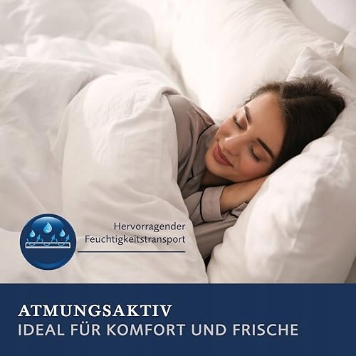 Optymalna regulacja wilgotności: Dzięki miękkim właściwościom połączonym z optymalnym wchłanianiem wilgoci, kołdra zapewnia przyjemny klimat snu na lato.