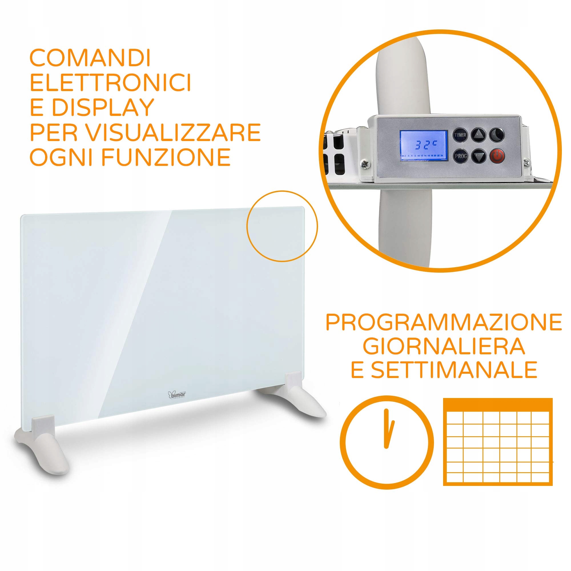 FUNKCJE - Ten elektryczny konwektor o niskim zużyciu energii jest przeznaczony wyłącznie do użytku wewnętrznego jako grzejnik, na przykład jako grzejnik ścienny do łazienki, nie może być używany w zakurzonych środowiskach ani z materiałami o wysokiej lotności, gdy urządzenie jest włączone, nagrzewa się i dotykaj tylko przycisków panelu sterowania