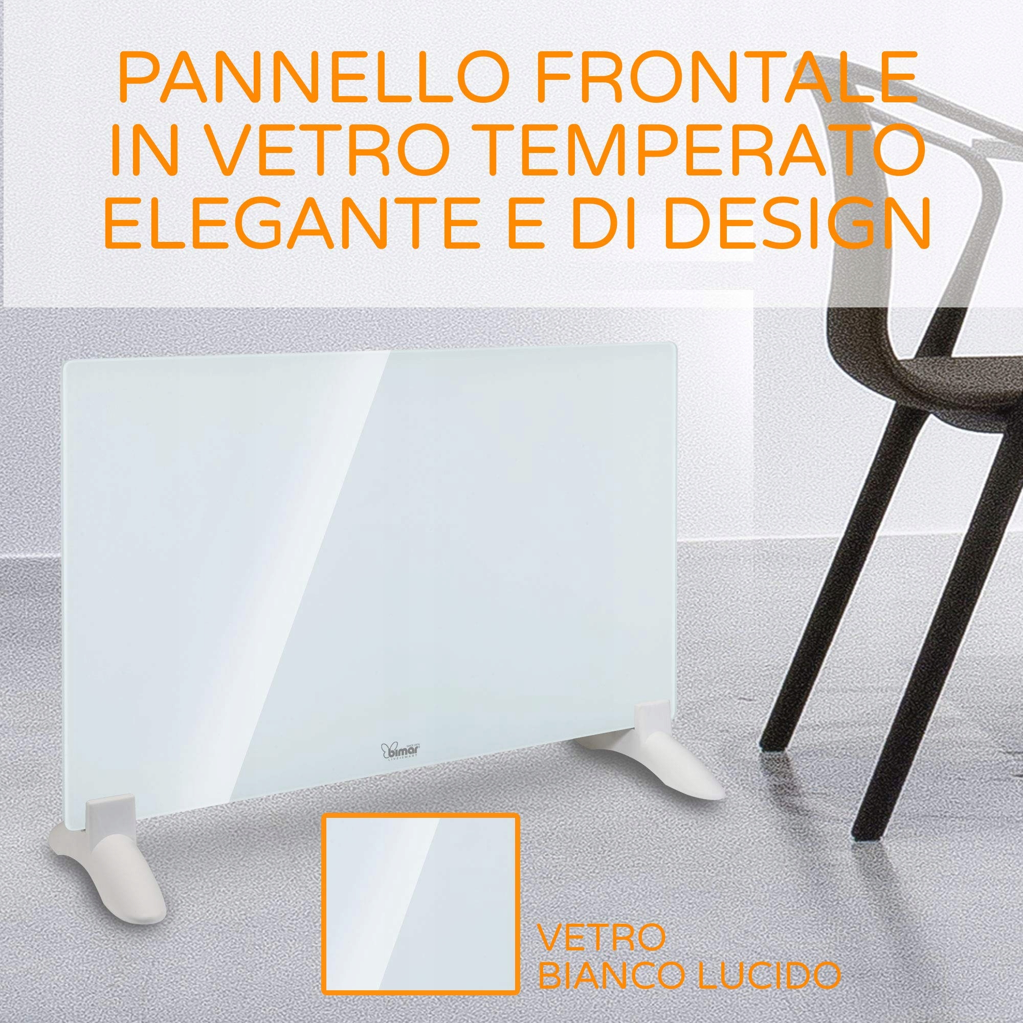 Właściwości: Konwektory ścienne z aluminium z żebrami, obudowa z metalu z przednią płytą ze szkła hartowanego, odpowiednie do pomieszczeń o powierzchni ok. 8 m² jako grzejnik łazienkowy, zestaw do montażu na ścianie i nóżki, regulacja temperatury 5-35 °C