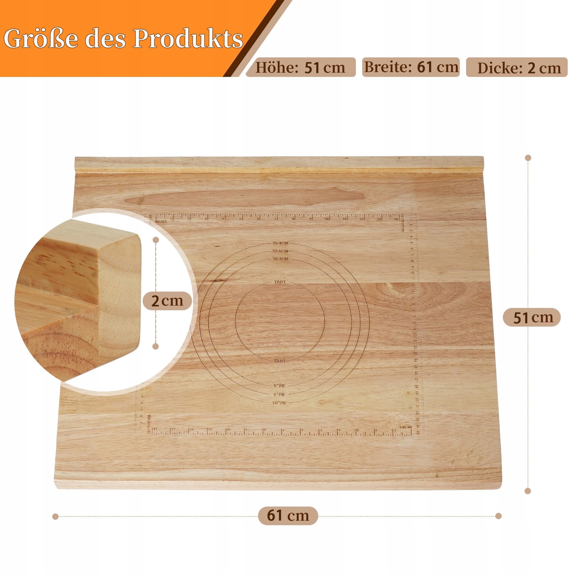 【Wygodne w użyciu】Oznaczenia pomiarowe na przedniej stronie drewnianej deski do ciasta pomagają znaleźć odpowiedni rozmiar ciasta lub ciasta.