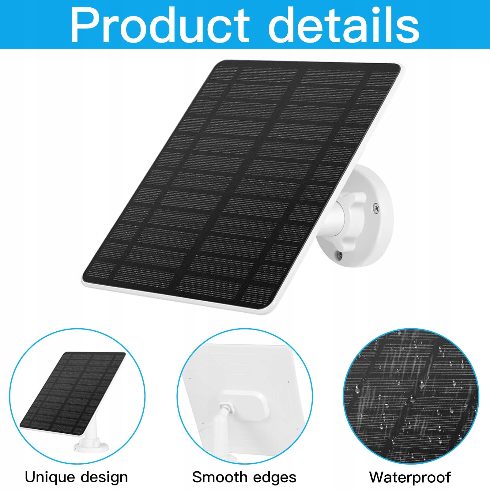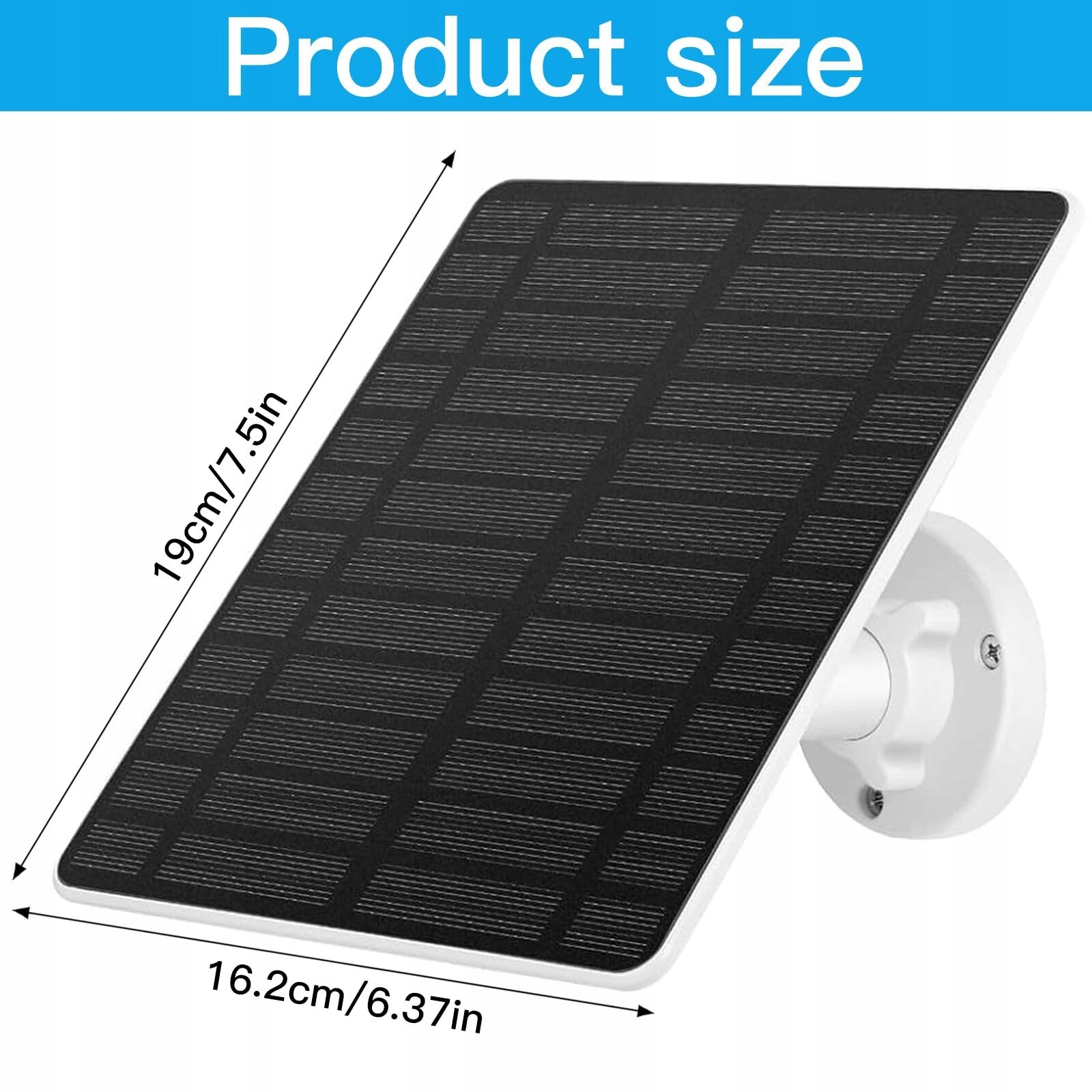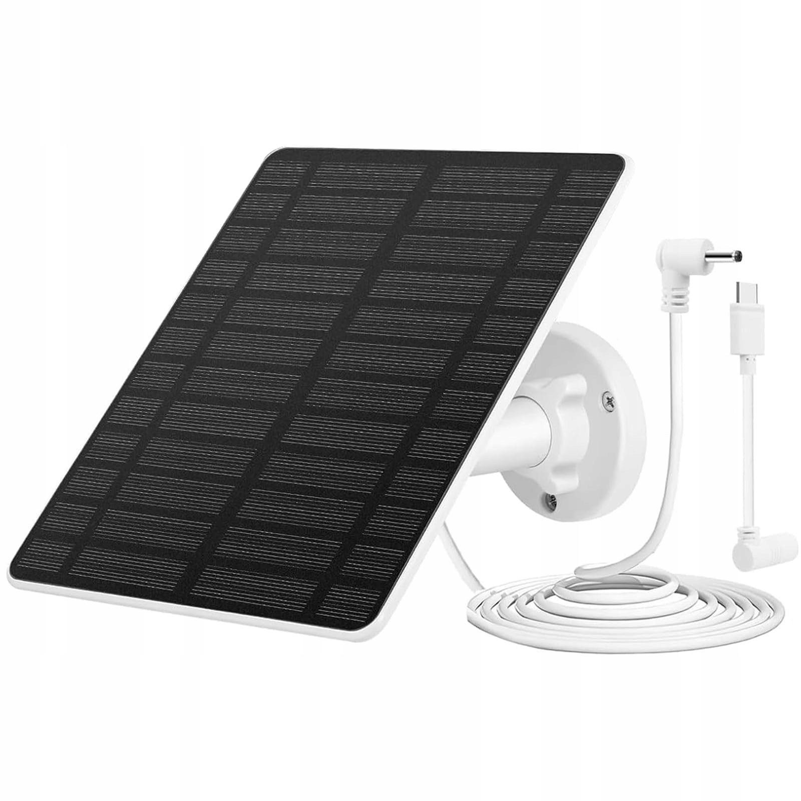 Zawartość opakowania: Zestaw panelu słonecznego zawiera 1 * panel słoneczny, 1 * regulowany uchwyt ścienny, 1 * adapter USB-C z cylindrycznym złączem, 1 * woreczek ze śrubami, 1 * instrukcję obsługi. Dzięki obrotowemu uchwytowi 360° i kablowi o długości 4 metrów można swobodnie regulować kąt i pozycję instalacji, aby zmaksymalizować efektywność absorpcji światła.