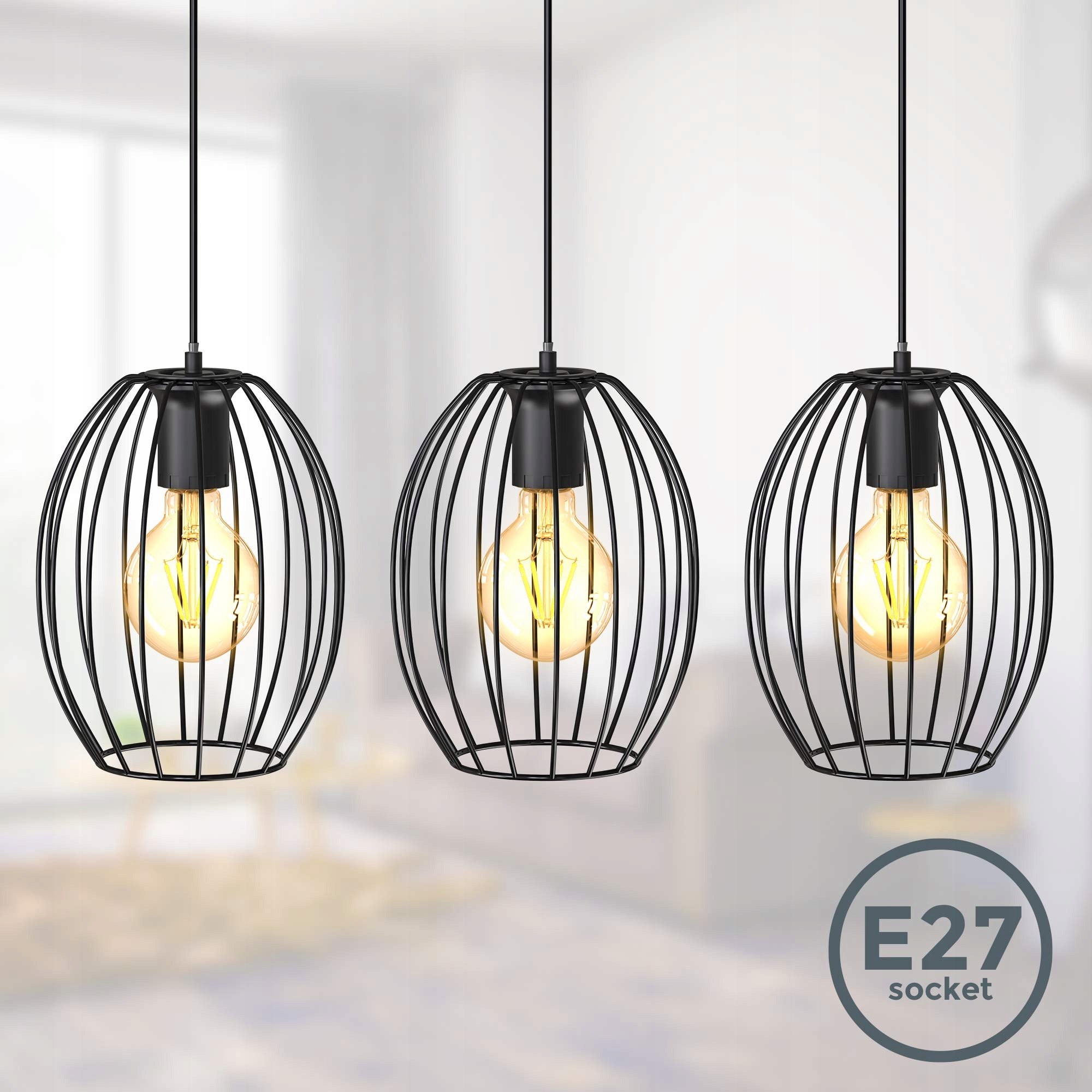Do oświetlenia potrzebujesz żarówek E27 o maks. 60 Watt. Zalecamy żarówki Edison lub przezroczyste filamentowe, aby dopełnić wygląd lampy sufitowej