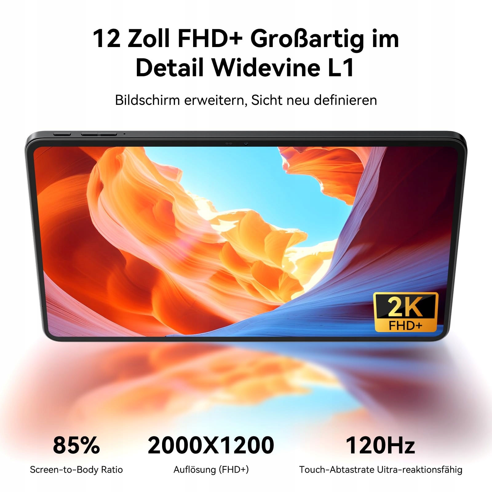Tablet 12'' + duży wyświetlacz 2K FHD: Tablet Blackview o przekątnej 12 cali wyposażony jest w wyświetlacz 2K FHD, który zapewnia wyraźny i szczegółowy obraz. Niezależnie od tego, czy oglądasz filmy, przeglądasz internet czy edytujesz dokumenty, duży ekran oferuje imponujące wrażenia wizualne. Duży rozmiar ekranu zwiększa produktywność i wartość rozrywki, dzięki czemu możesz efektywnie wykonywać wiele zadań jednocześnie i cieszyć się treściami o wysokiej rozdzielczości.