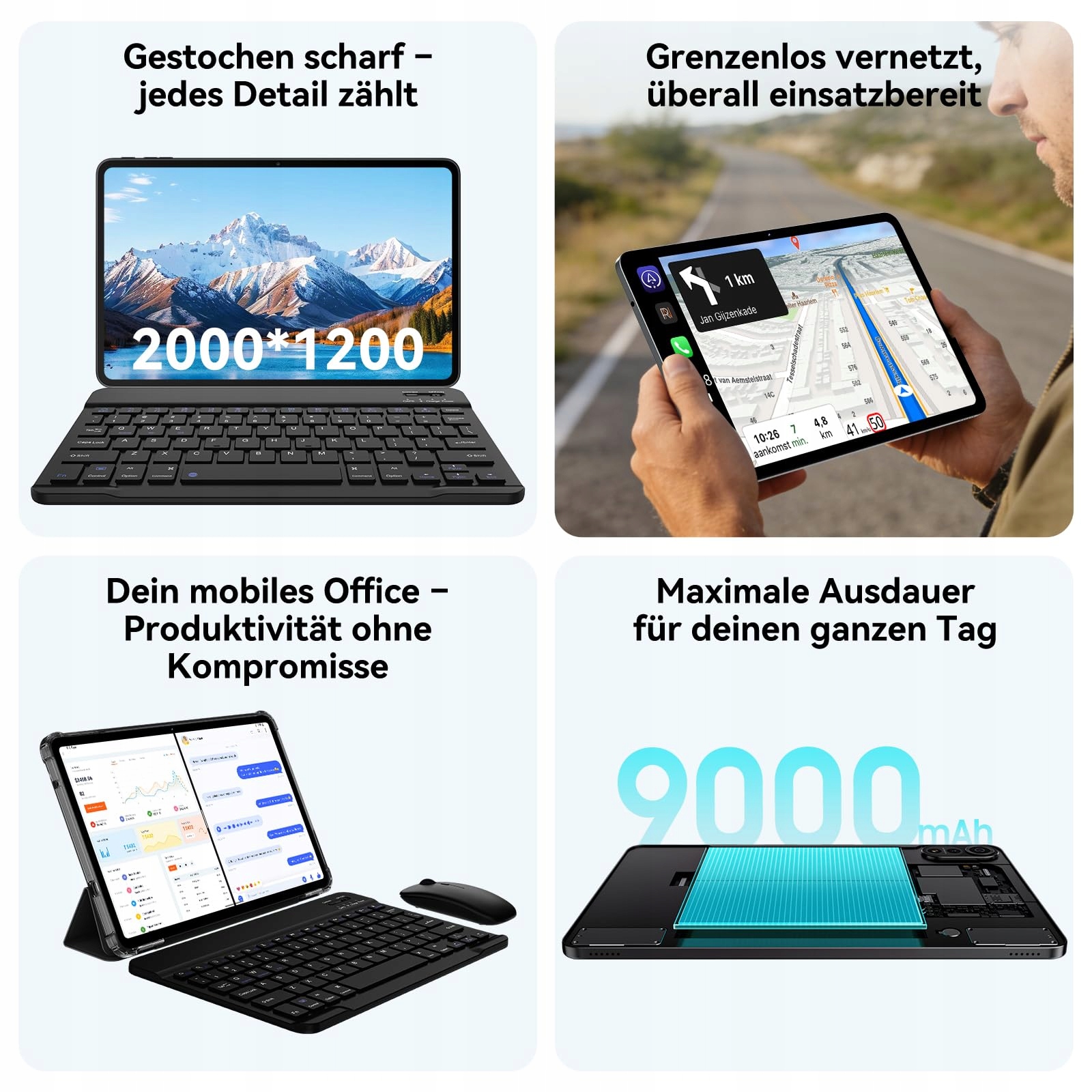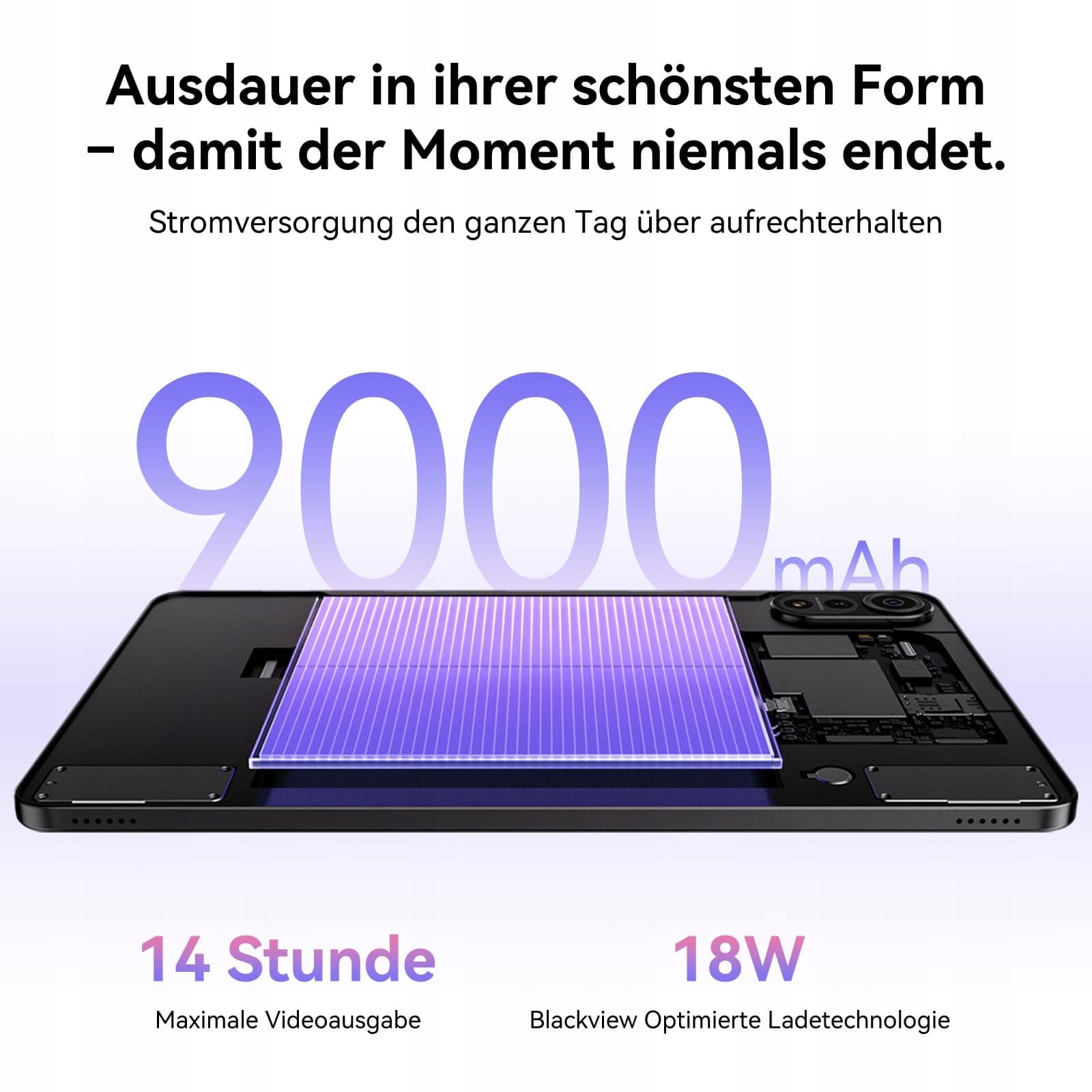 4G LTE + 5G WiFi + BT 2.0 + 9000 mAh + bateria 18 W: Blackview MEGA2 oferuje 4G LTE, 5G WiFi oraz Bluetooth 5.0 dla bardzo szybkich i stabilnych połączeń. Mocna bateria 9000 mAh gwarantuje długi czas użytkowania, a szybkie ładowanie 18 W pozwala na szybkie doładowanie. Niezależnie od tego, czy jesteś w pracy czy na wolnym czasie, zawsze pozostajesz w kontakcie i możesz korzystać z tabletu przez cały dzień bez przerw.