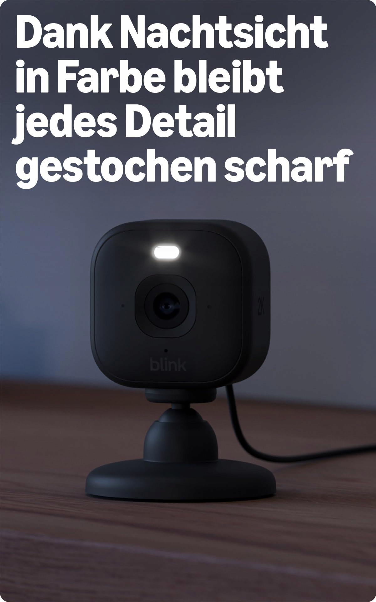 Blink Mini 2K+ (najnowsza generacja) kamera do monitoringu wewnętrznego | kamera bezpieczeństwa z zasilaczem do domu | rozdzielczość wideo 2K, 4-krotny zoom, kolorowa widoczność w nocy | 1 kamera – czarna