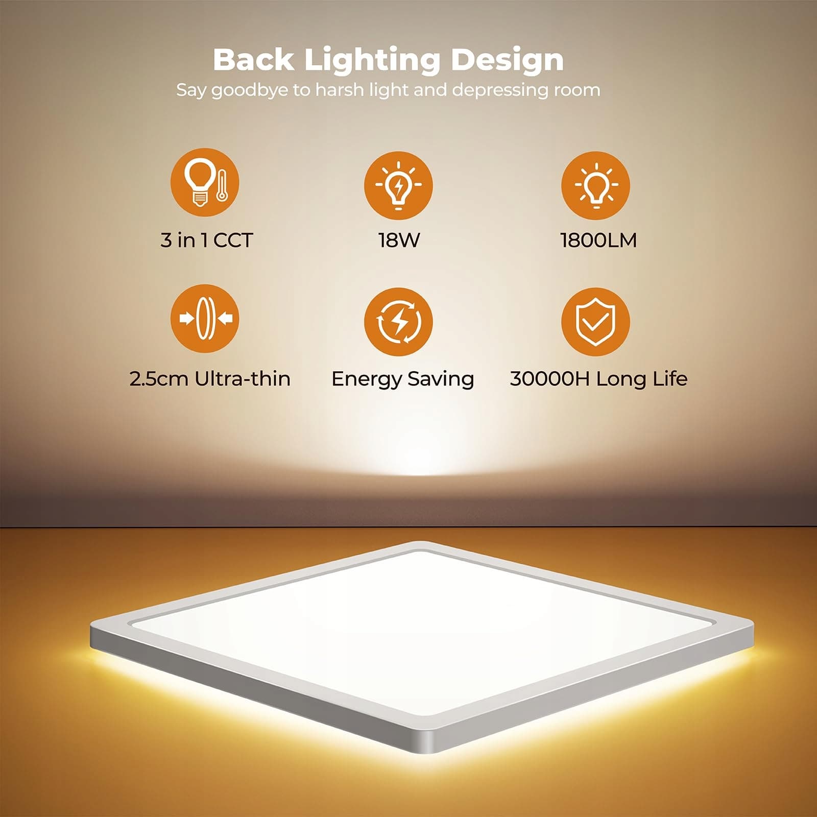 Ultra cienka & Podświetlenie: 2,5 cm ultra cienki wygląd sprawia, że panel LED wygląda na cieńszy; Tył lampy sufitowej wykonany jest z materiału o wysokiej przepuszczalności, który stworzy piękny halo; Idealna do niskich sufitów i różnych stylów dekoracyjnych, takich jak sypialnie, kuchnie, łazienki, jadalnie, klatki schodowe, piwnice, garaże, balkony i inne.