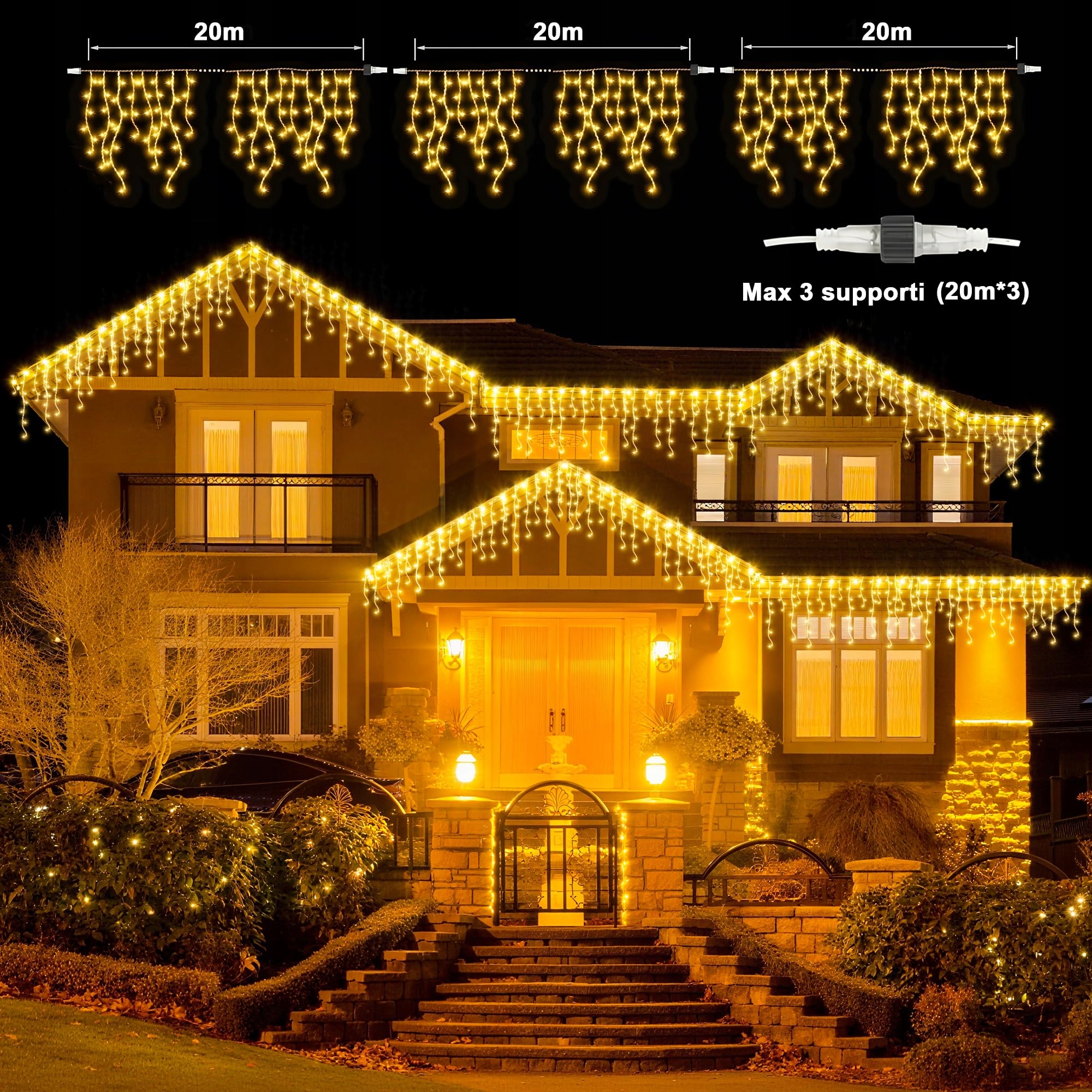 BLOFUN łańcuch świetlny na zewnątrz 20M 720 LED, oświetlenie świąteczne z efektem lodowego deszczu IP65 wodoodporne z timerem i 8 trybami, ciepła biel do choinki i dekoracji - ciepła biel