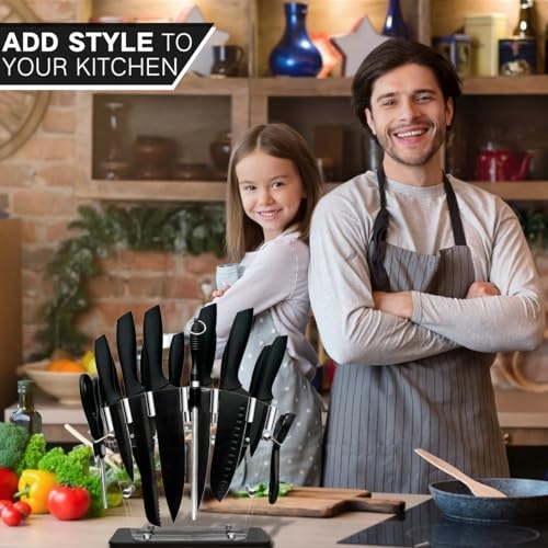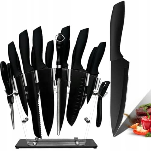 Blok na noże, 16-częściowy zestaw noży kuchennych Czarne