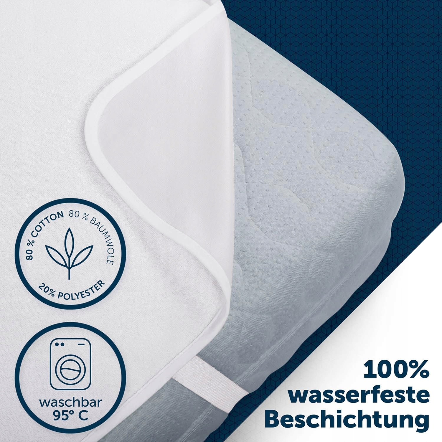 100% WODODPORNY I ODPOWIEDNI DO ODDYCHANIA: Dzięki oddychającemu materiałowi frotte z 80% zawartością bawełny oraz ochronnej powłoce na spodzie, ochraniacz na materac jest wodoodporny i oddychający.