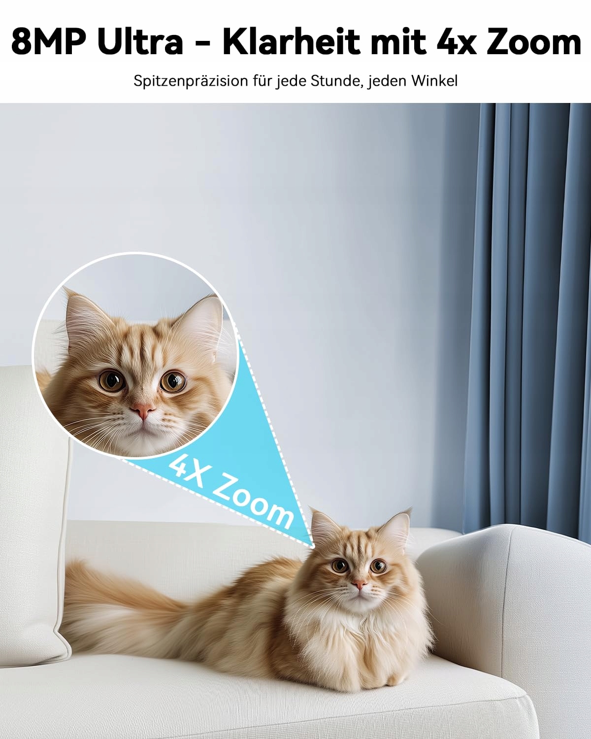 【8MP Ultra-HD Jakość & 3 Tryby Nocne】4K 800 megapikseli dostarczają krystalicznie czyste, szczegółowe obrazy – ostre w dzień, elastyczne w nocy dzięki podczerwieni, inteligentnemu i pełnokolorowemu trybowi nocnemu. Nawet w całkowitej ciemności lub przy słabym oświetleniu zobaczysz każdy szczegół, idealne do całodobowego monitoringu niemowląt i zwierząt domowych.