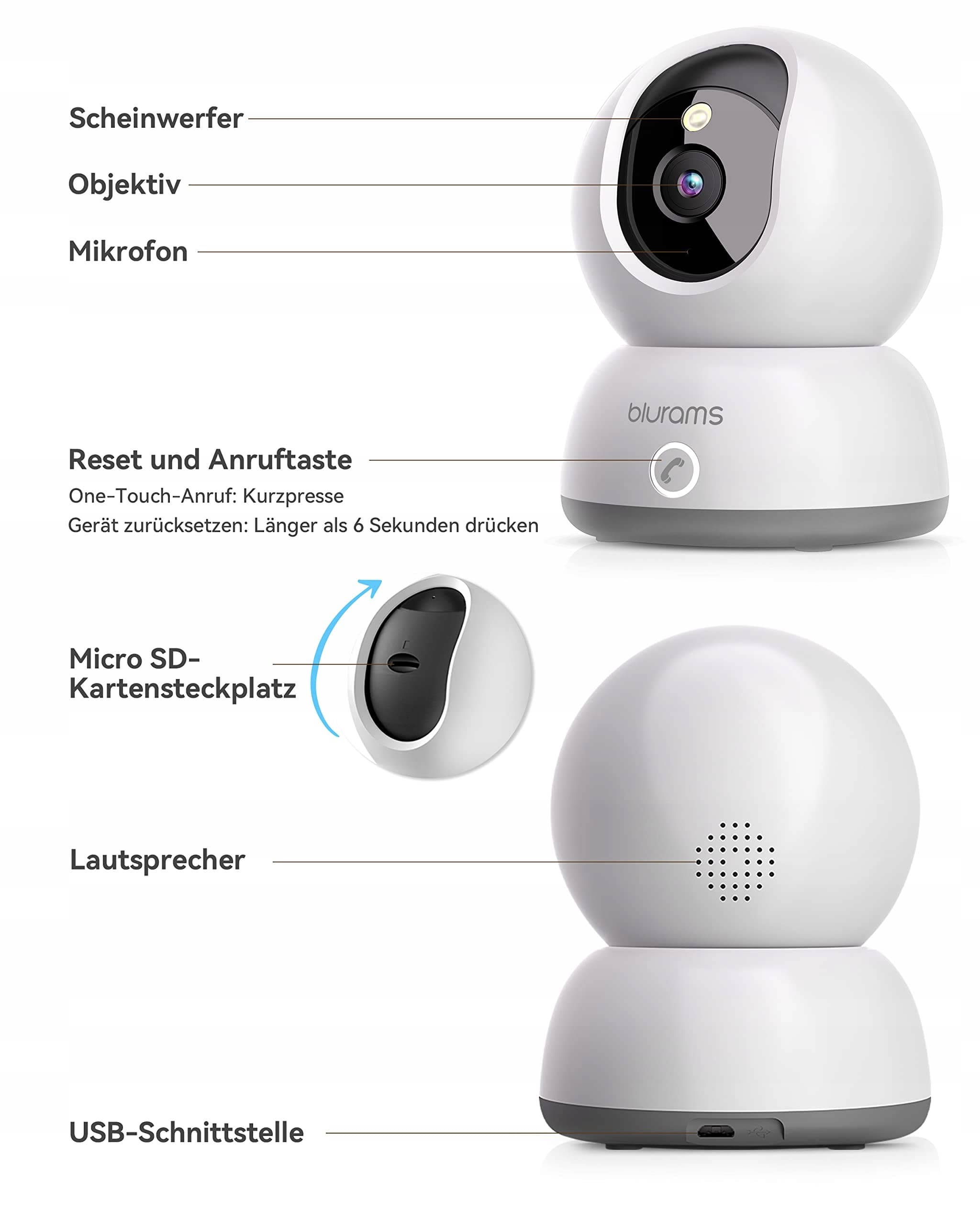 BLURAMS Kamera 2K HD Bezpieczeństwa Wewnętrzna WiFi Nocna Wizja