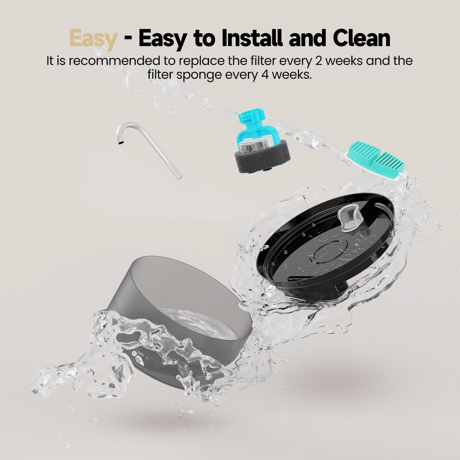 [Stałe dostarczanie czystej wody] Aktywny węgiel + filtr gąbkowy o niskiej gęstości mogą odfiltrować zanieczyszczenia w wodzie i stale zapewniać funkcję filtracji, aby utrzymać wodę w czystości, dzięki czemu Twój kot może pić czystą wodę w każdej chwili.