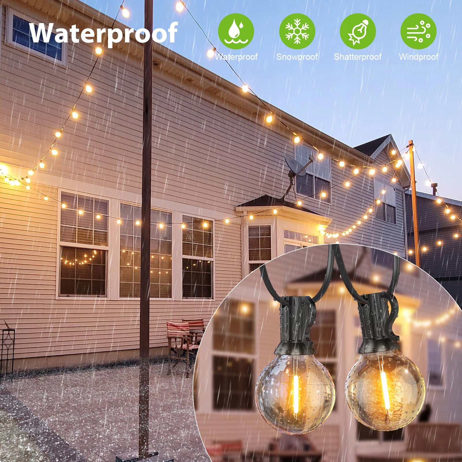 [Wodoodporny i odporny na stłuczenia]G40 lichterkette outdoor są wykonane z odpornego na wysokie temperatury i nietłukącego się plastiku, który nie rozbija się na niebezpieczne odłamki szkła, nawet jeśli żarówka spadnie na ziemię. Klasa wodoodporności IP45 jest specjalnie zaprojektowana do użytku na zewnątrz, może być używana w ekstremalnych warunkach pogodowych, takich jak deszcz, śnieg, wiatr, nadaje się do dekoracji ogrodu, podwórka, balkonu, tarasu, altany i innych miejsc na zewnątrz.