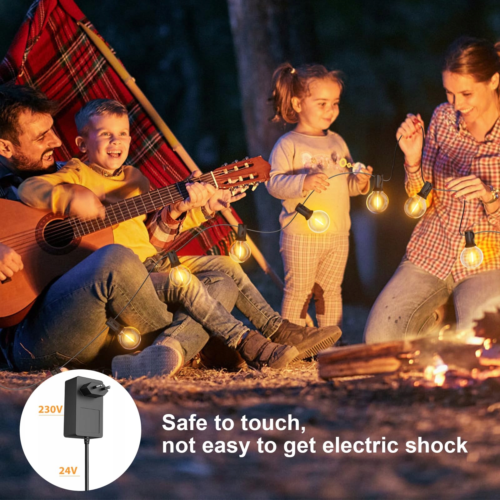[24V Niskie napięcie większe bezpieczeństwo]Led lichterkette außen ma napięcie wejściowe 220-240V, żarówki mają napięcie wyjściowe 24V. Możesz bezpiecznie dotykać lichterkette außen strom, bardziej bezpieczne w użyciu, nie musisz martwić się o dzieci, starsze zwierzęta porażenie prądem.