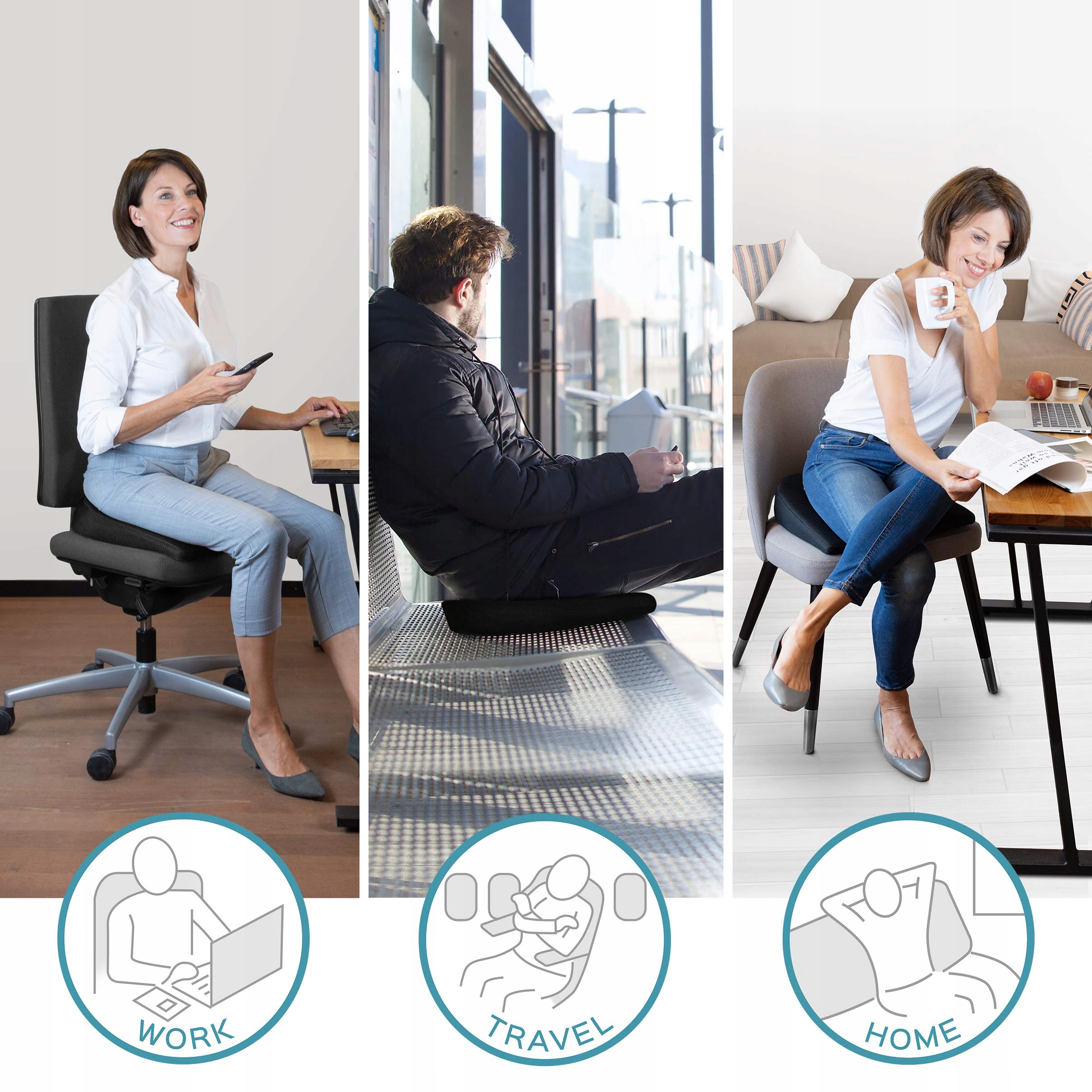 ERGONOMICZNA PODUSZKA SIEDZENIOWA - Dzięki kształtowi klinowemu ortopedyczna poduszka siedzeniowa wspiera prawidłową postawę ciała podczas siedzenia i może zapobiegać bólom pleców, napięciom szyi i podobnym problemom.