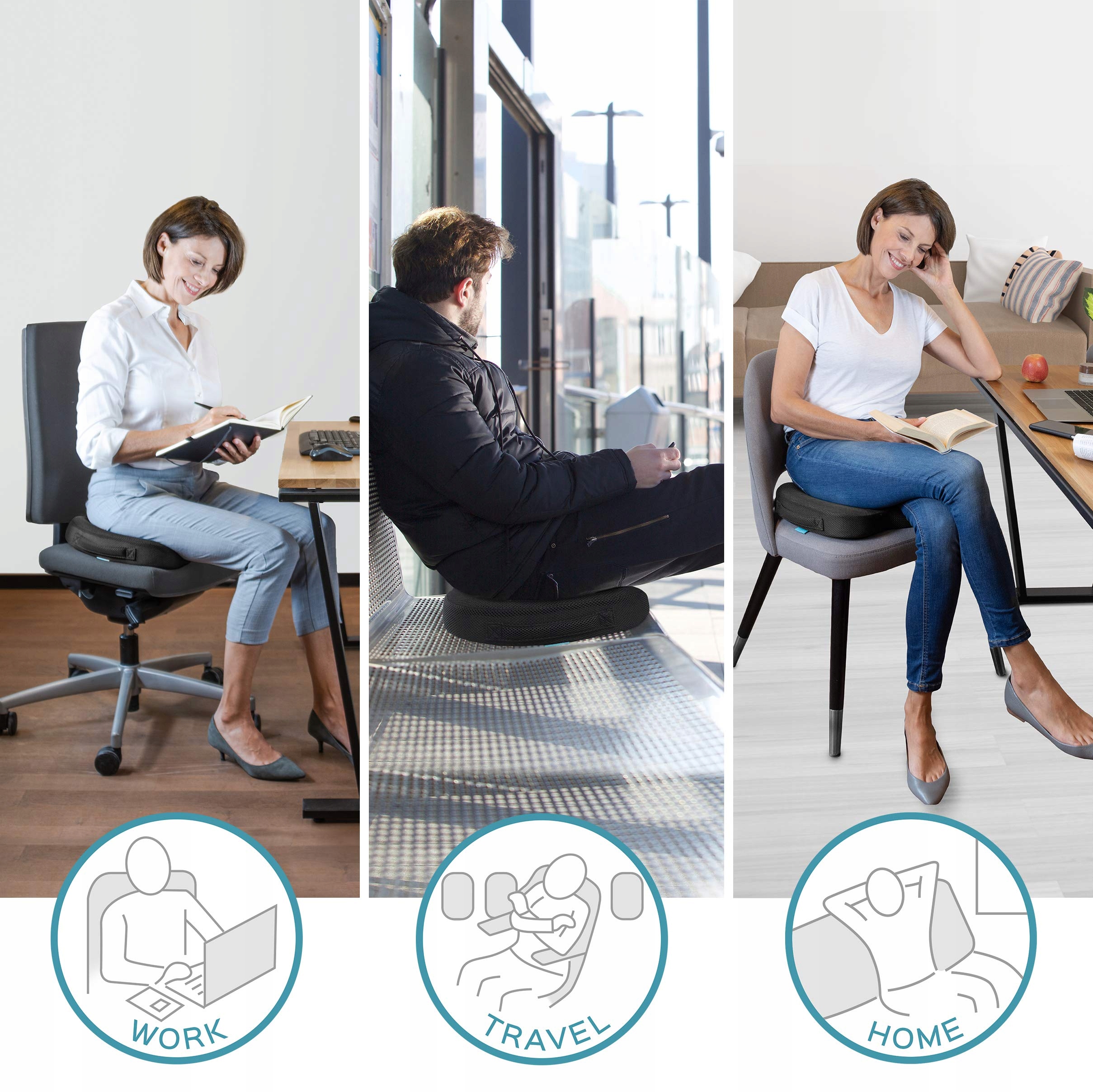 UNIWERSALNA: O wymiarach 48 x 36 x 9,5 cm, nasza poduszka do siedzenia jest kompatybilna z krzesłami i fotelami samochodowymi. Wypustki z żelu silikonowego na spodzie zapewniają pewne trzymanie na każdej powierzchni.