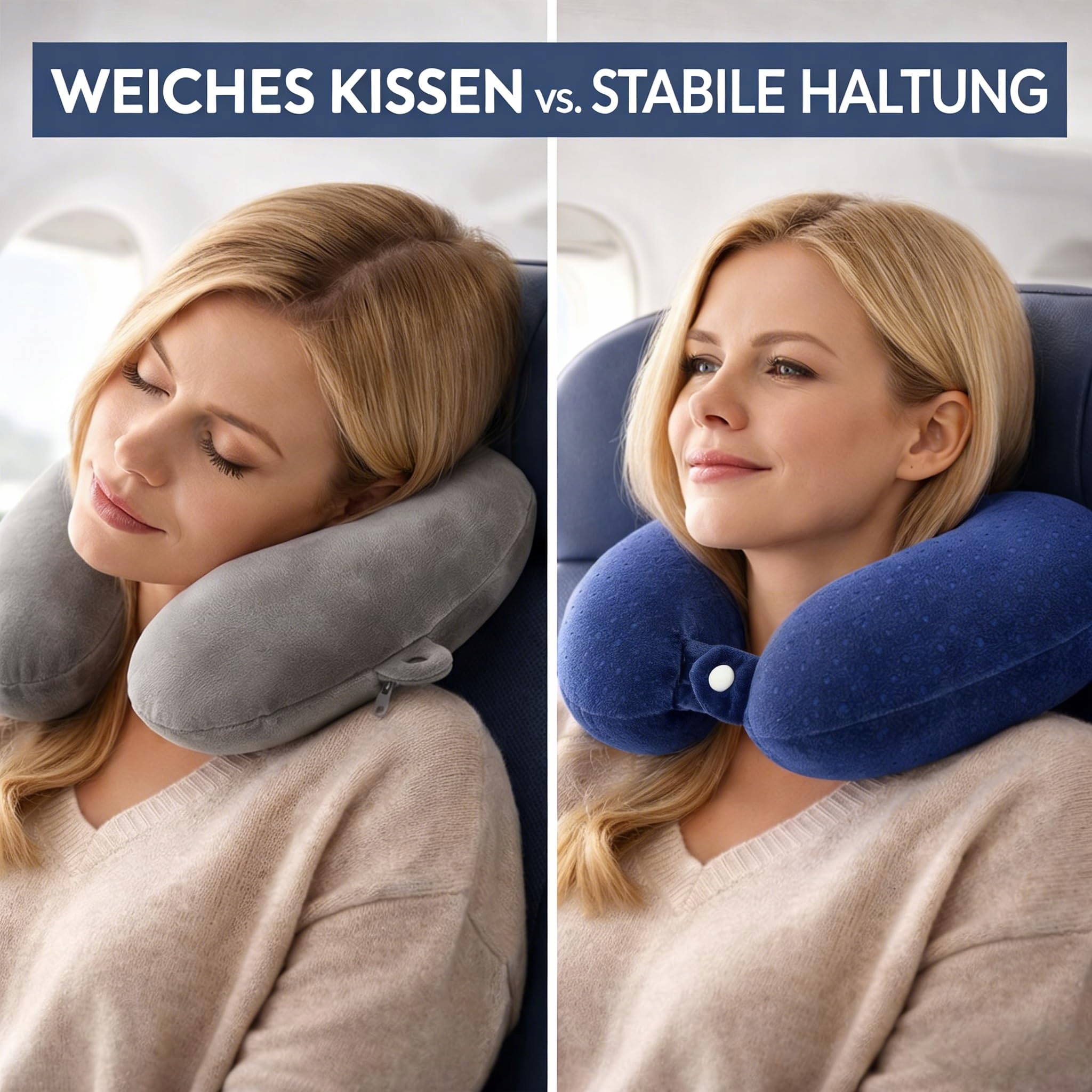 OPTIMALNE WSPARCIE PODCZAS LOTU, JAZDY SAMOCHODEM I W BIURZE: Wiskoelastyczna pianka memory dostosowuje się precyzyjnie do kształtu szyi, nie zapadając się. Idealna dla wszystkich, którym tradycyjne poduszki podróżne są zbyt miękkie lub niestabilne – dla kontrolowanej postawy zamiast opadania.