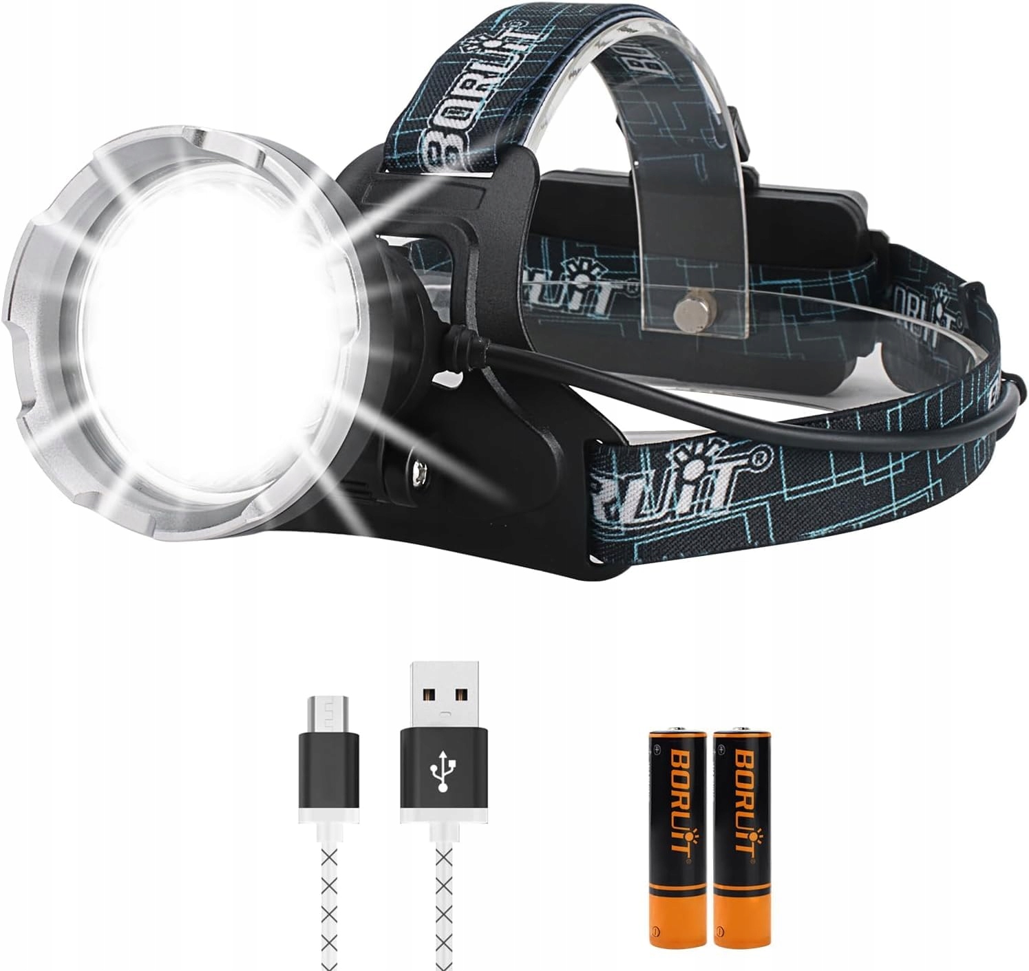 BORUIT B10 Latarka Czołowa LED 2000 Lumen USB-C Wodoodporna Do Biegania | Premium Supply