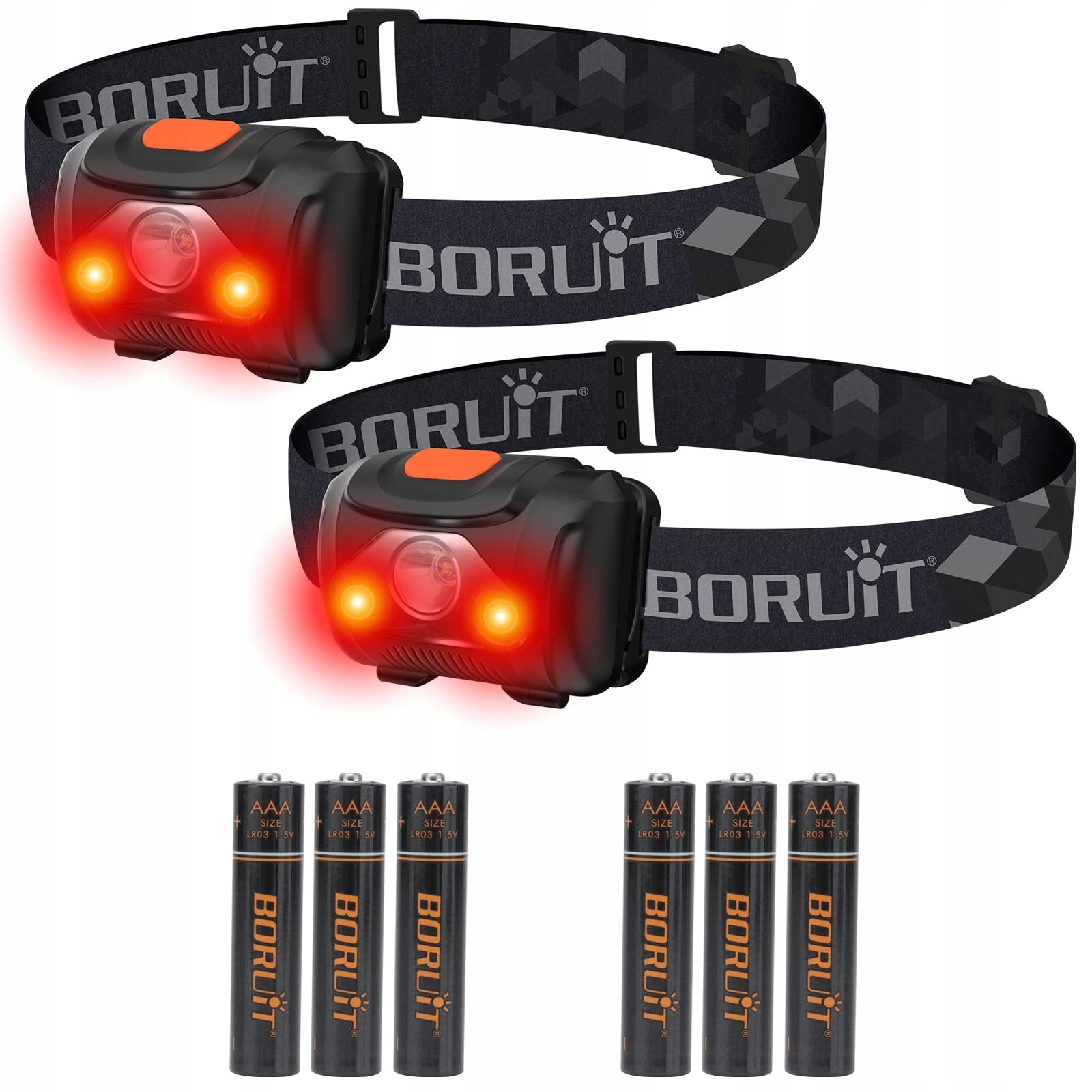 BORUIT LED Latarka Czołowa 2PCS Czerwone Światło AAA Super Jasna 4 Tryby | Premium Supply