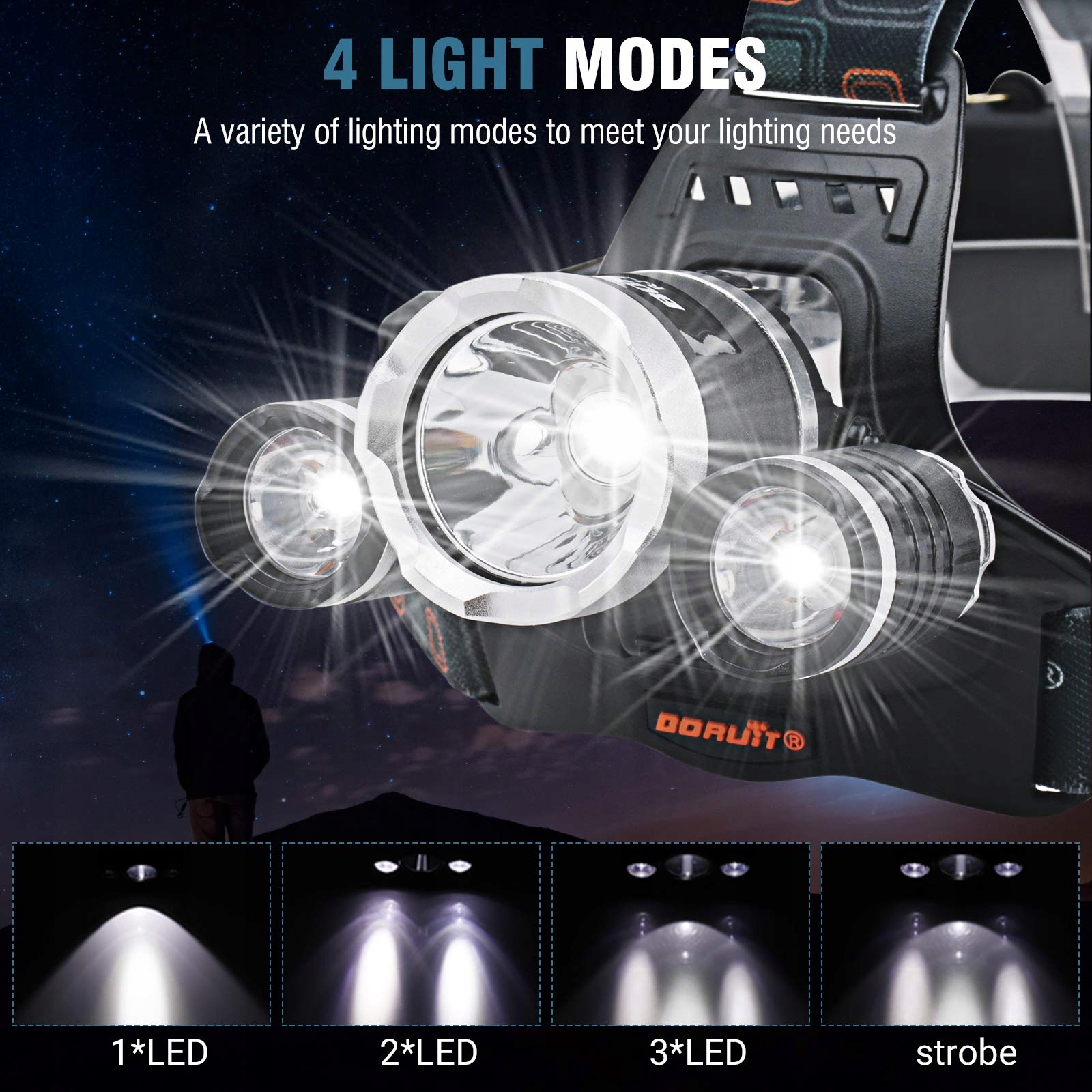 BORUIT RJ3000 Latarka Czołowa LED 5000 Lumen Wodoodporna 4 Tryby