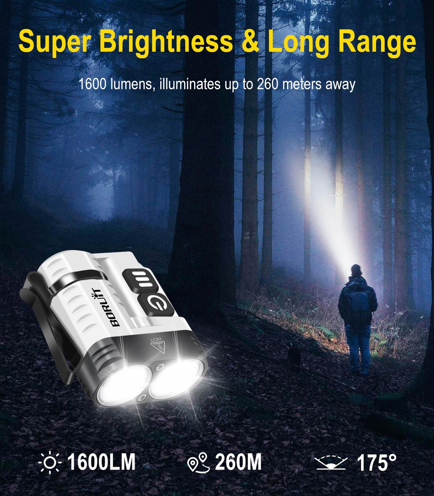 BORUIT U6 Latarka LED Ekstremalnie Jasna 1600 Lumen, Mini A/C-C Ładowalna Latarka z Klipsem Magnetycznym, IP68 Wodoodporna EDC Mała Latarka do Campingów i Sytuacji Kryzysowych