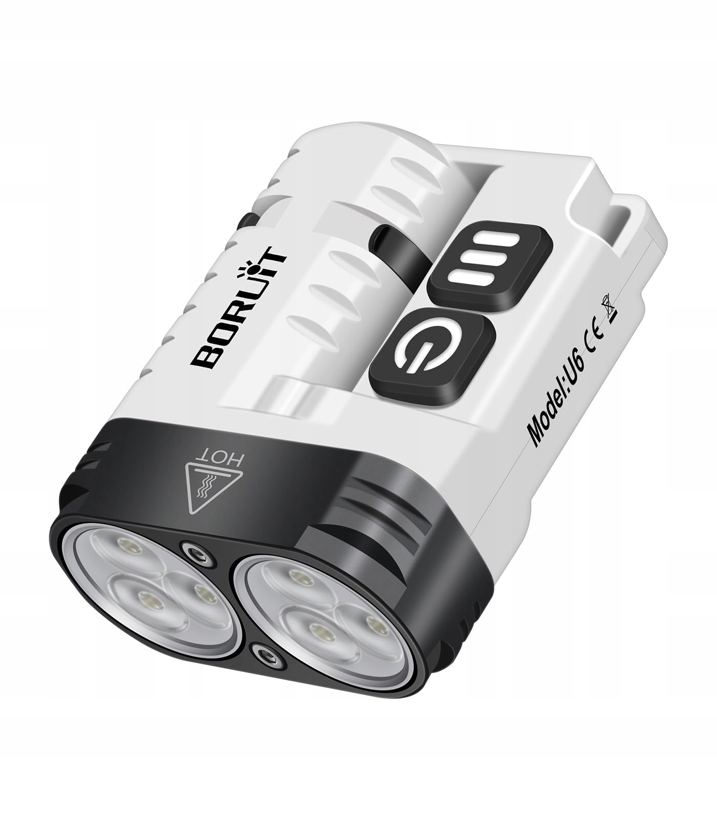Nasza mini latarka U6 jest kompaktowa (45 mm x 30,5 mm x 57 mm) i lekka (78 g), z klipsem obrotowym o 180° i magnesem na końcu, co ułatwia mocowanie, łatwa do przenoszenia (np. w kieszeni, czapce, breloczku lub torbie) i odpowiednia do użycia oraz przechowywania w podróży