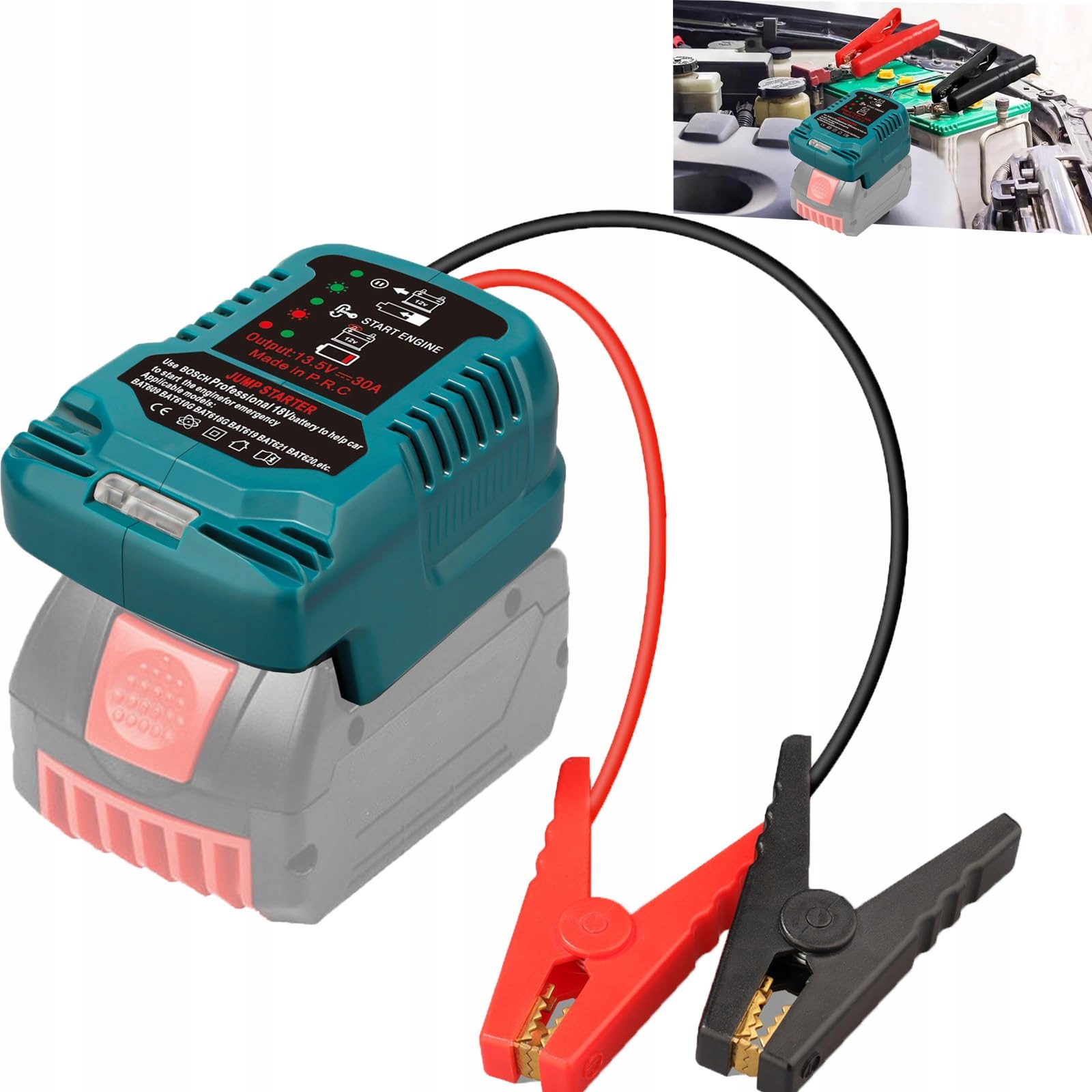 Adapter rozruchowy do akumulatora samochodowego kompatybilny z Bosch Professional 18V System GBA, adapter rozruchowy do akumulatora do silników benzynowych do 3,5L lub diesla do 3,5L z kablem zestawu rozruchowego 11AWG