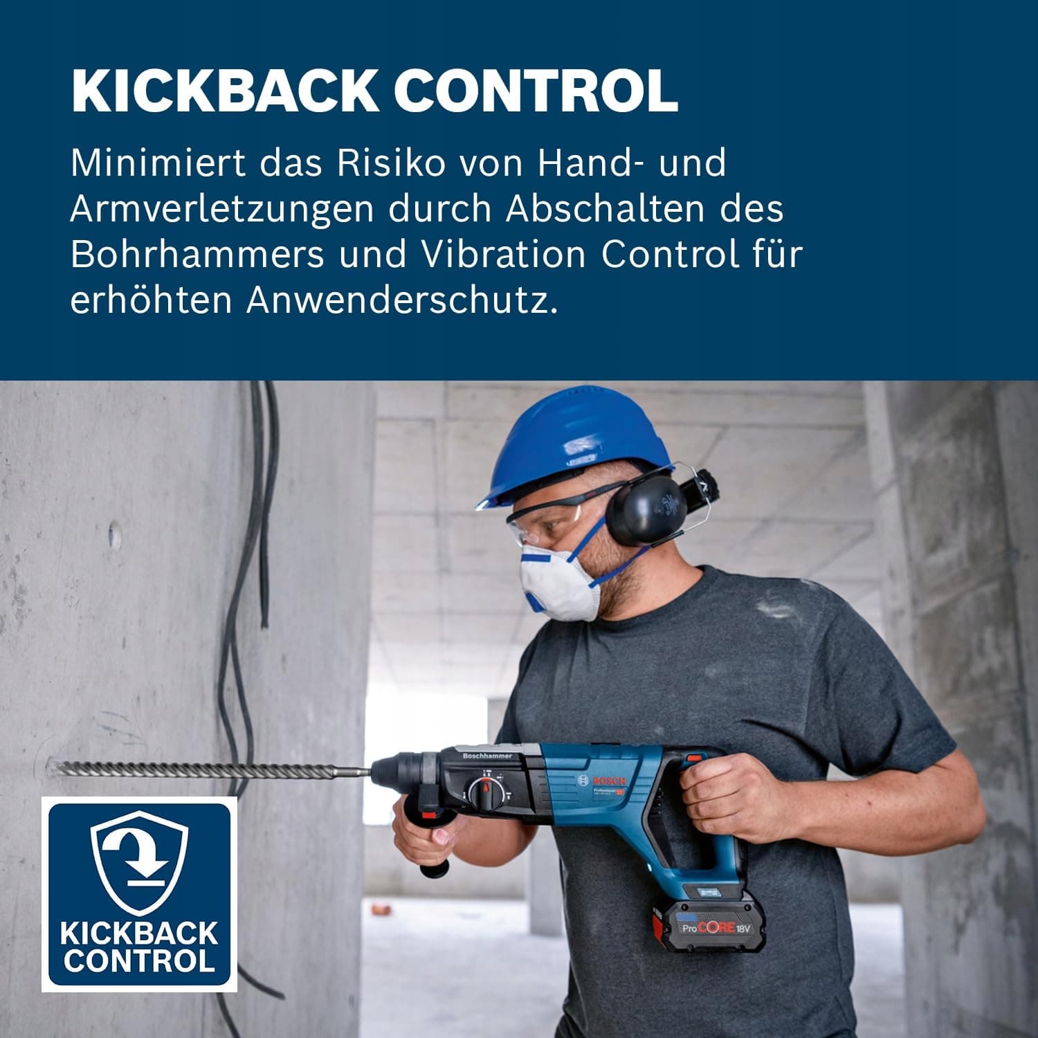 Bosch Professional 18V System Akumulatorowy młotowiertarka GBH 18V-28 D (KickBack Control, w tym ściereczka do czyszczenia, dodatkowy uchwyt, ogranicznik głębokości, wkładka, XL-BOXX, bez akumulatora/ładowarki)